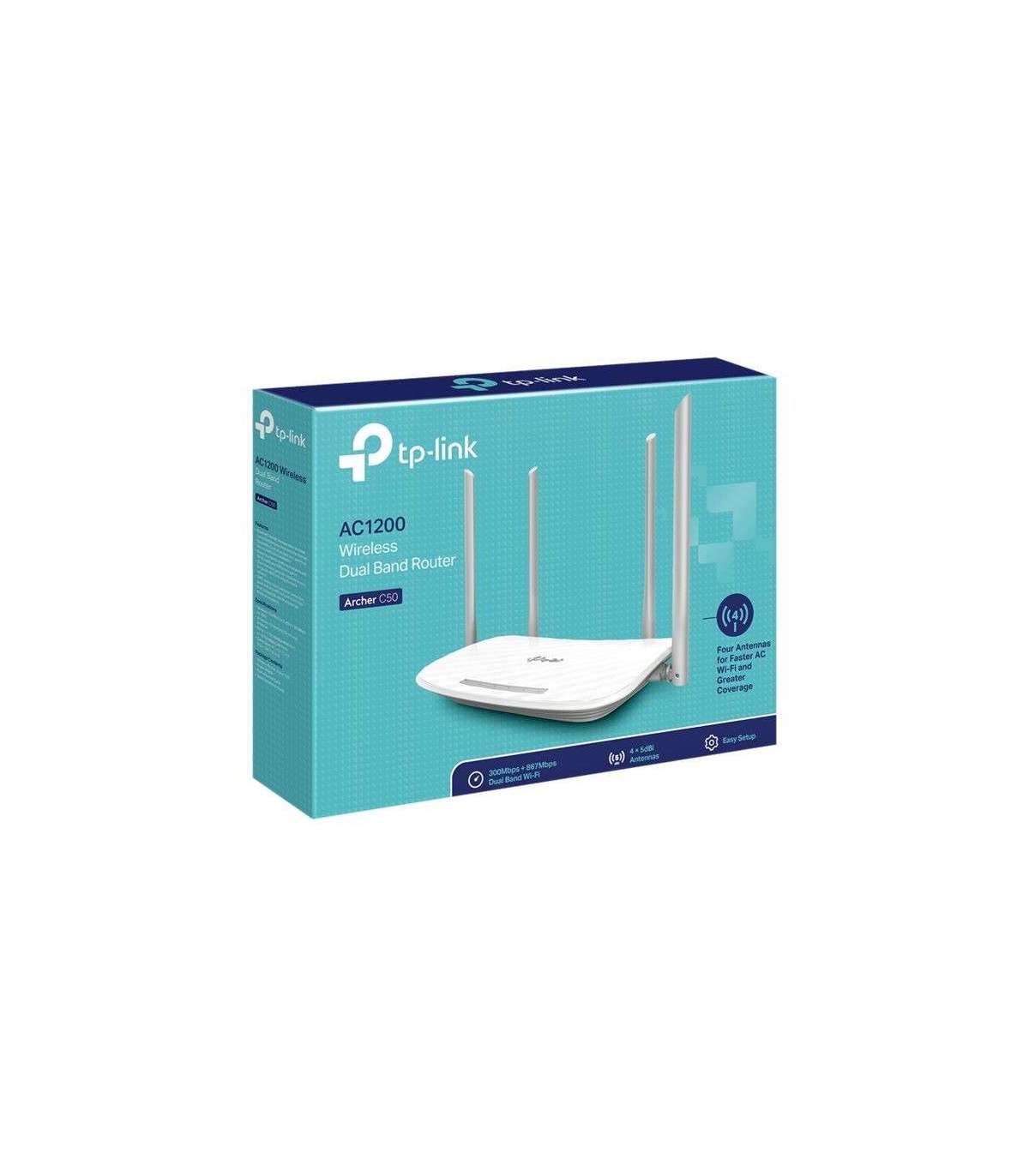 Router | Archer C50 | 802.11ac | 300+867 Mbit/s | 10/100 Mbit/s | Ethernet LAN (RJ-45) ports 4 | Mesh Support No | MU-MiMO No | No mobile broadband | Antenna type 2xExternal