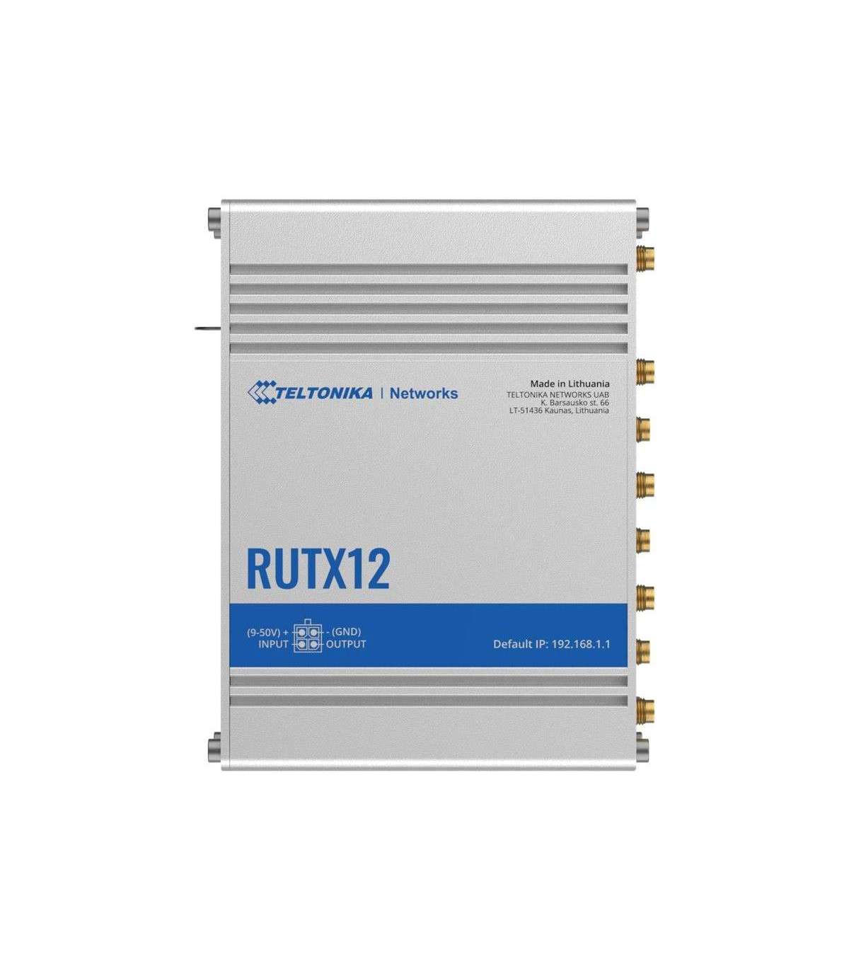 Dual LTE Cat 6 Router | RUTX12 | 802.11ac | 867 Mbit/s | 10/100/1000 Mbit/s | Ethernet LAN (RJ-45) ports 4 | Mesh Support No | MU-MiMO Yes | 4G | Antenna type 4xSMA for LTE, 2xRP-SMA for WiFi, 1xRP-SMA for Bluetooth, 1xSMA for GNNS | 1 x USB A