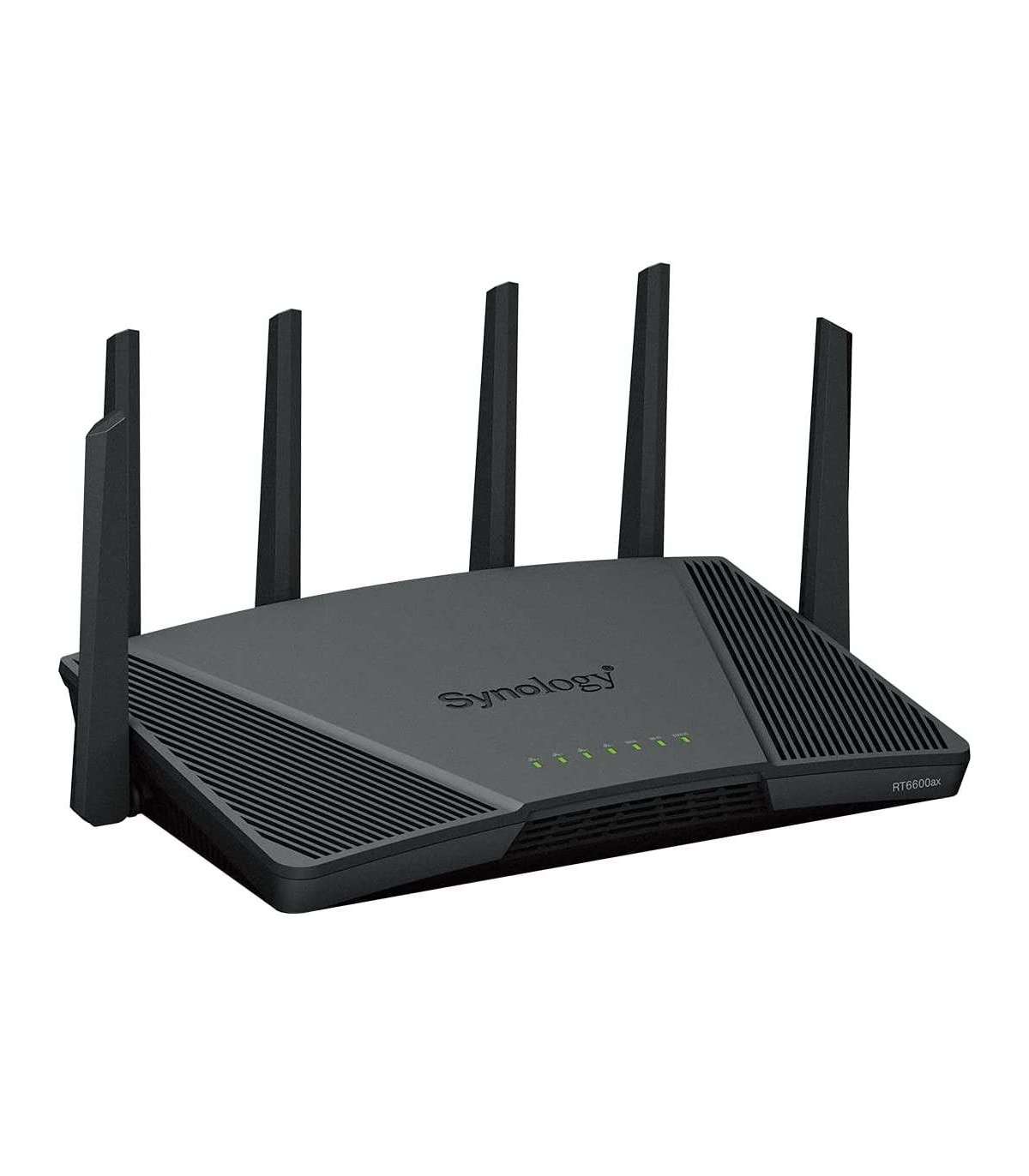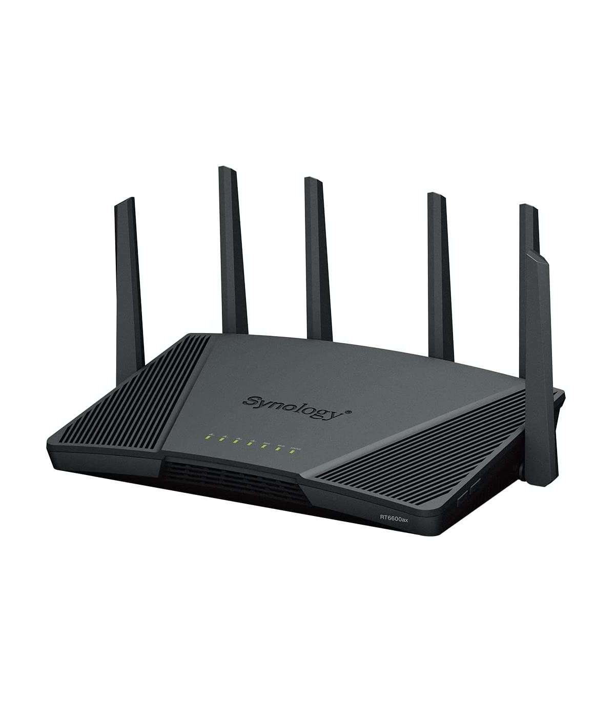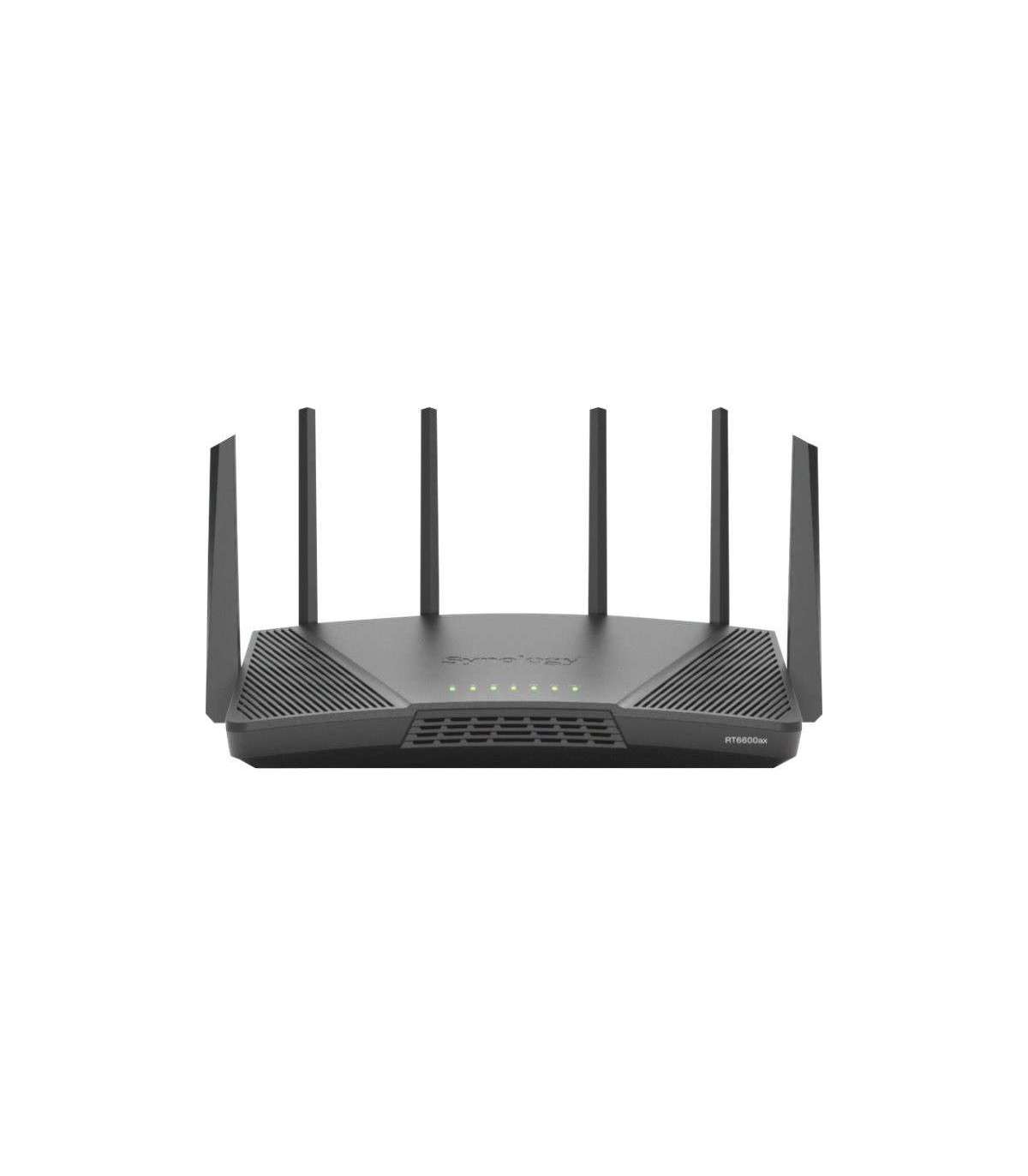 Synology RT6600ax Ultra-fast and Secure Wireless Router for Homes | Ultra-fast and Secure Wireless Router for Homes | RT6600ax | 802.11ax | 4800 Mbit/s | Ethernet LAN (RJ-45) ports 5 | Mesh Support No | MU-MiMO Yes | No mobile broadband | Antenna type External antenna x 6 | 24 month(s)