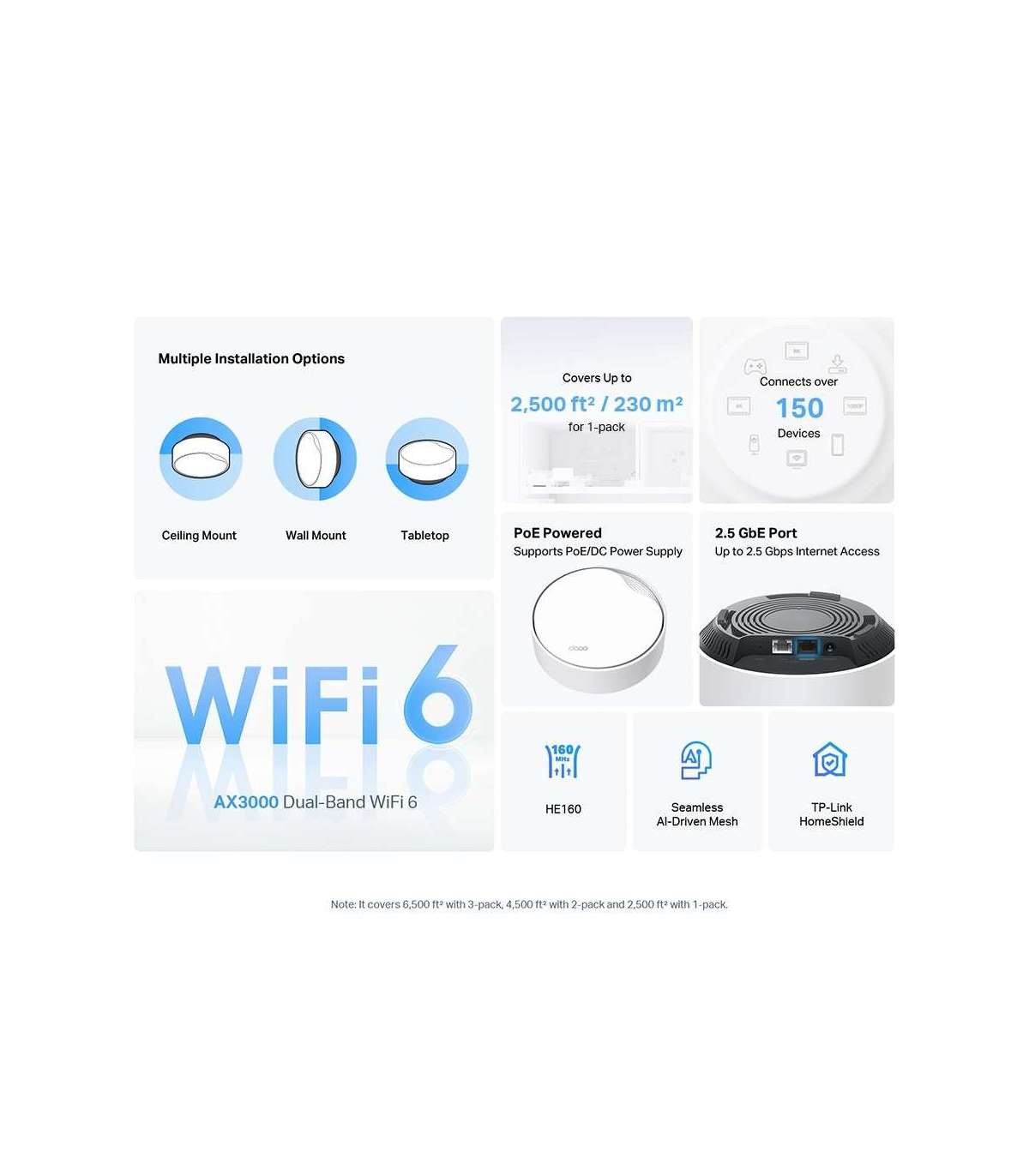 AX3000 Whole Home WiFi 6 System with PoE Deco X50-PoE (1-pack) 802.11ax Ethernet LAN (RJ-45) ports 1 Mesh