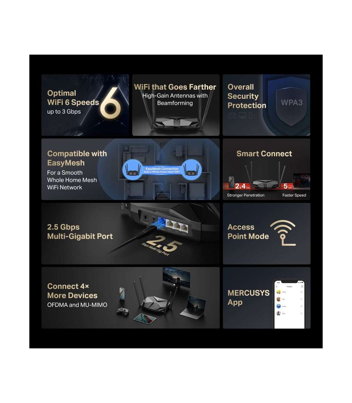 Mercusys MR85X AX3000 Dual-Band Wi-Fi 6 Router Mercusys AX3000 Dual-Band Wi-Fi 6 Router MR85X