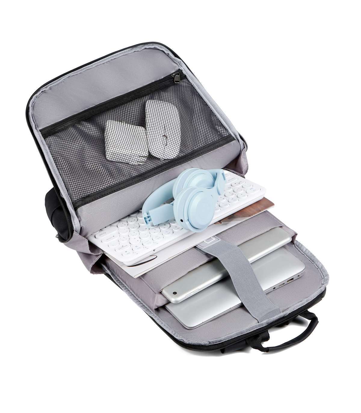 Unustate segaduse oma seljakotis ja leiate kõik oma asjad suurtest ja väikestest taskutest. Seal on palju taskuid: sülearvuti või raamatute, telefoni, tahvelarvuti, rahakoti, sülearvuti, prillide, väliste akude, särkide ja muu jaoks. Seljakoti külgedel on taskud veepudeli või vihmavarju jaoks.