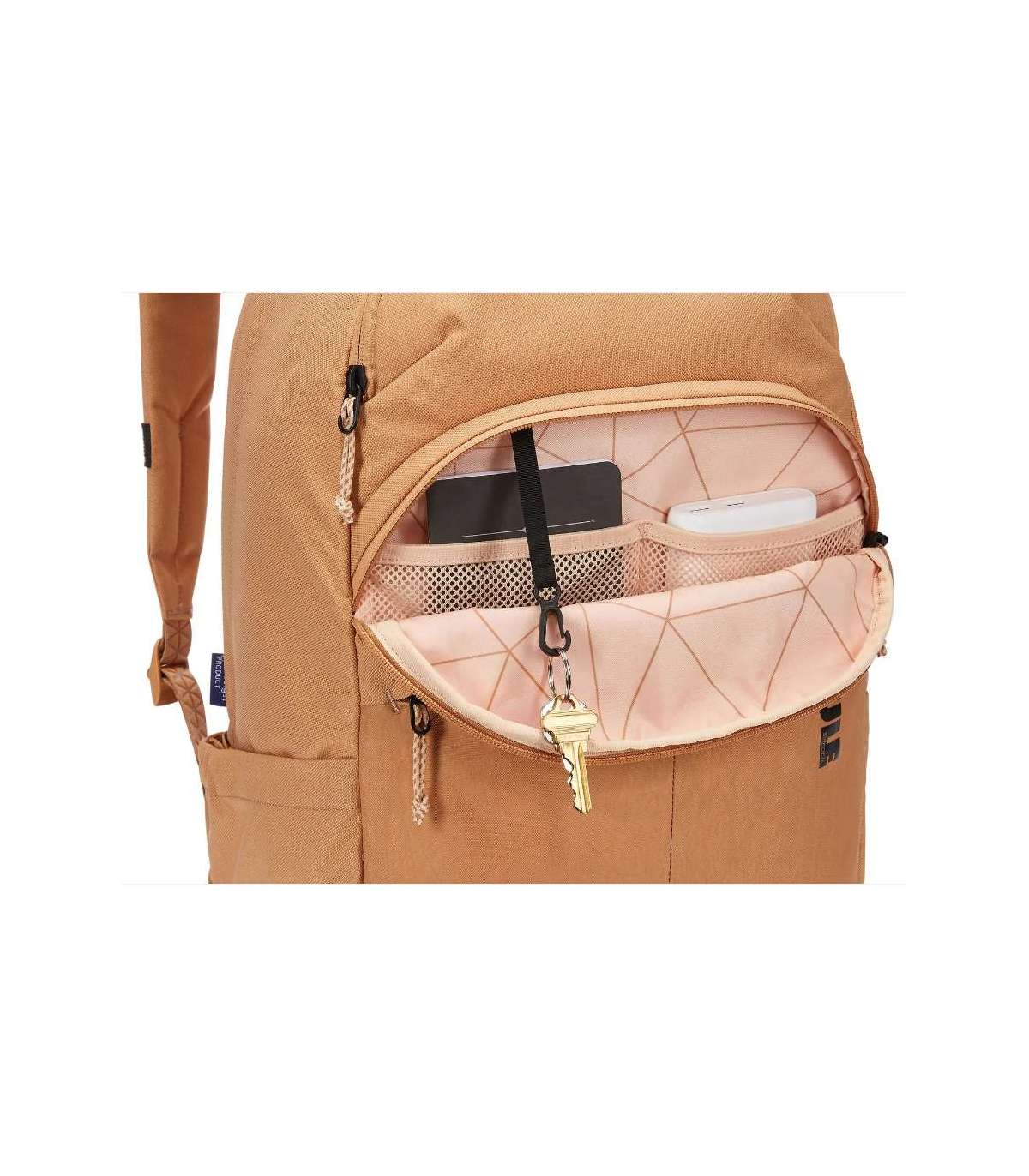 Esitaskus on väikesed tarvikute hoiutaskud ja võtmehoidja.