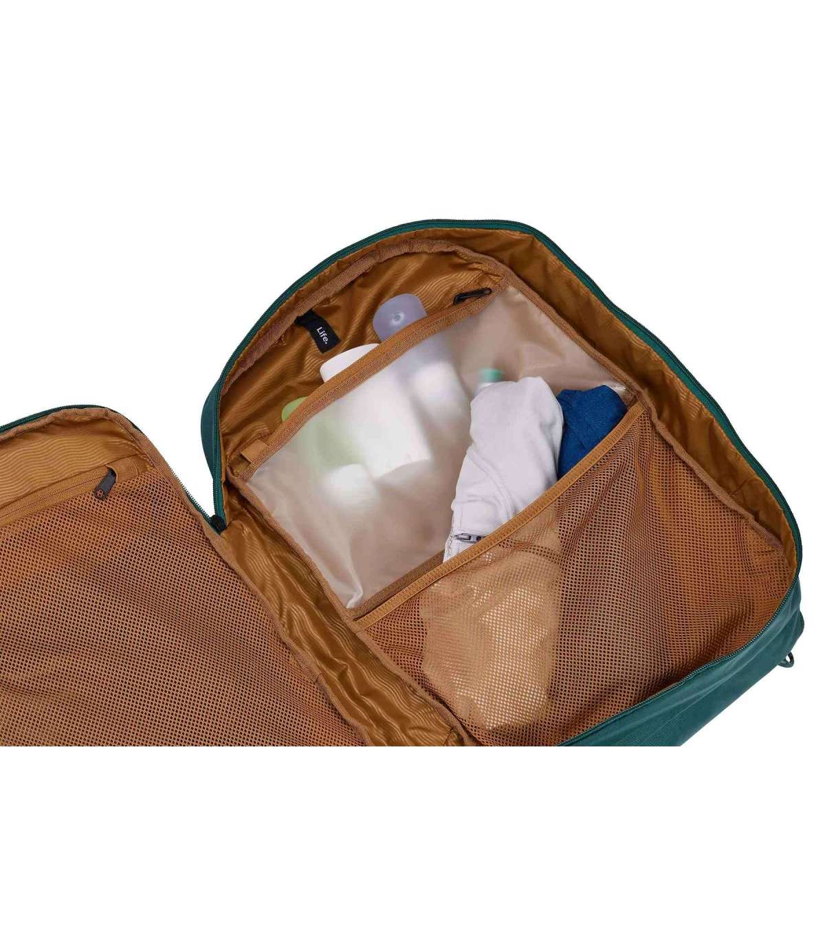 Seljakott avaneb täielikult lahti, et mõlemalt poolt hõlpsalt pakkida, ja sellel on võrkpaneeliga mahukas panipaik, mis suletakse esemete paigal hoidmiseks.