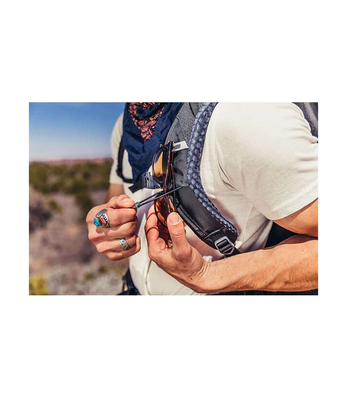 Perforated, breathable shoulder straps and chest strap with rescue whistle