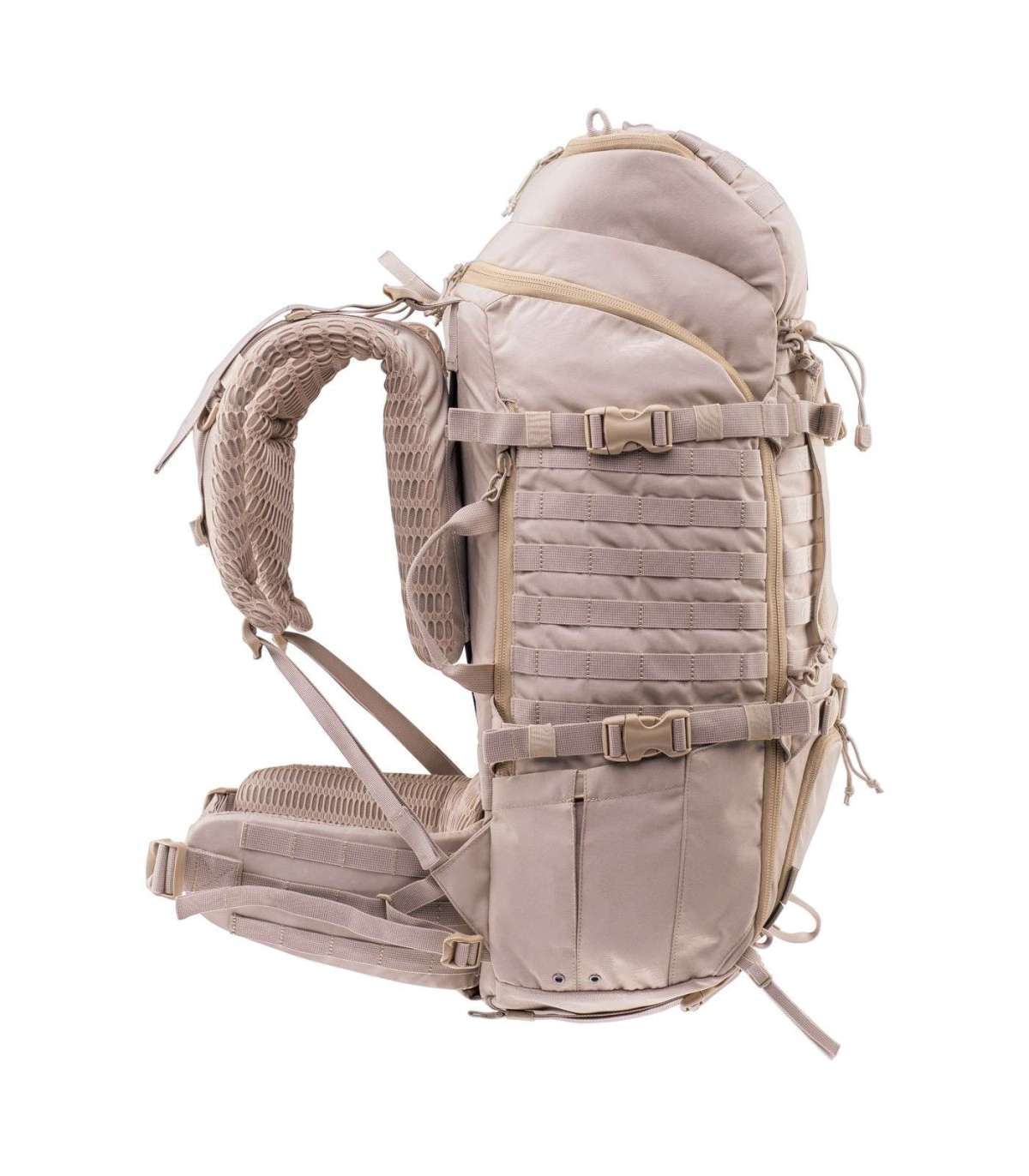 BACKPACK CAPACITY: 55 L SIZE: 31 x 22 x 67 cm WEIGHT: 2,60 kg MATERIAL COMPOSITION: 100% POLYESTER SPECIFICATION: - CARRYING SYSTEM - VERTICAL FLOW SYSTEM - ERGONOMIC BACK - RAIN BAG COVER - H2O SYSTEM - MOLLE SYSTEM - WHISTLE - ORGANISER