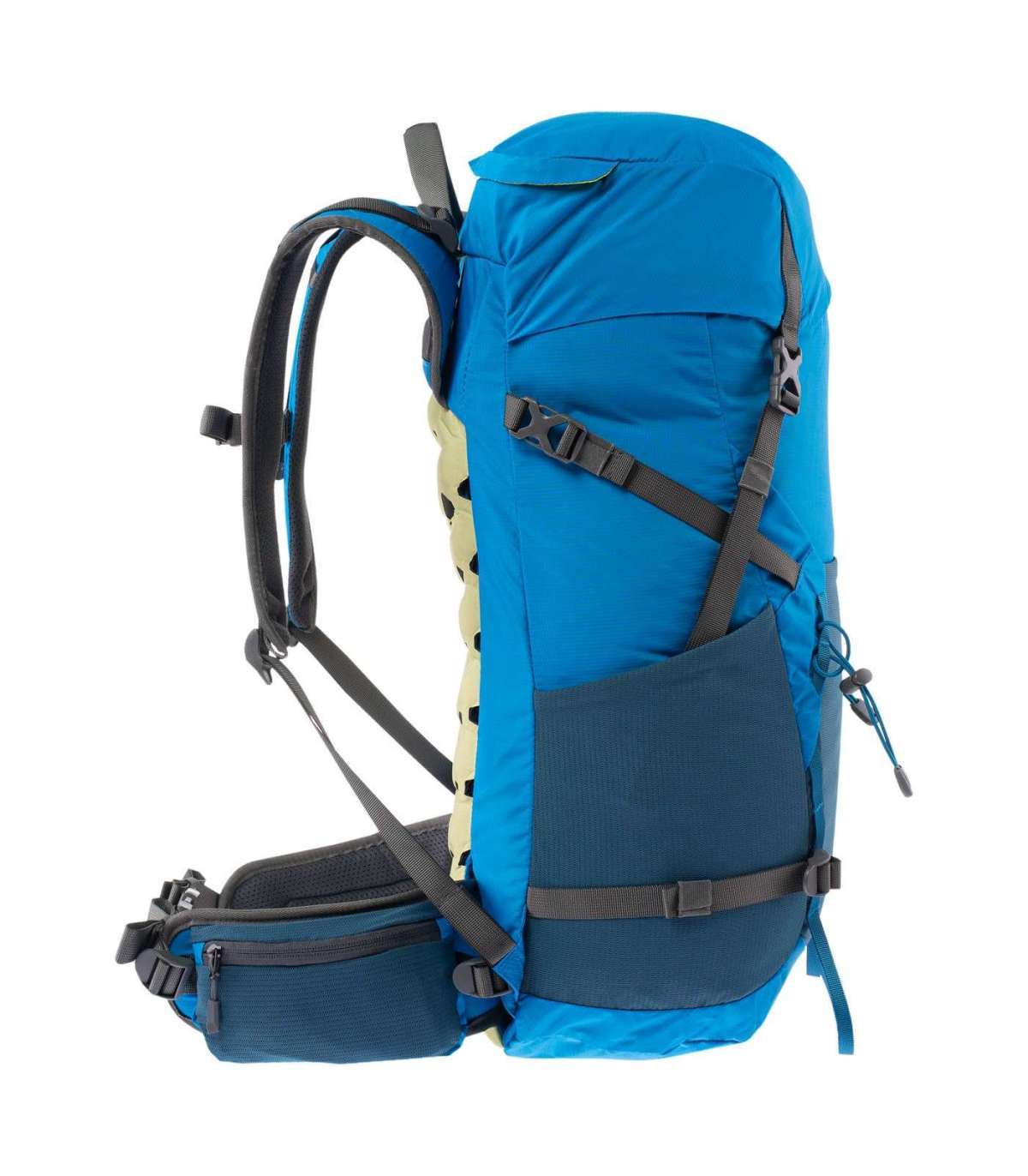 BACKPACK CAPACITY: 35 L DIMENSIONS: 55 x 31 x 17 cm WEIGHT: 1.12 kg MATERIAL COMPOSITION: MATERIAL: 75% POLYESTER, 25% ELASTANE LINING: 100% POLYESTER SPECIFICATION: - CARRYING SYSTEM - ERGONOMIC BACK - RAIN BAG COVER - H2O SYSTEM