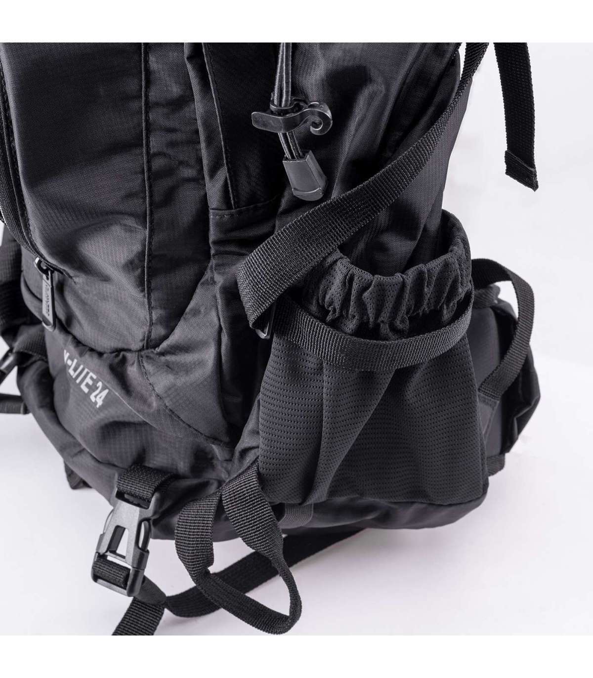 BACKPACK CAPACITY: 24 L SIZE: 47 x 29.5 x 19 cm WEIGHT: 1 kg MATERIAL COMPOSITION: NYLON + POLYESTER SPECIFICATION: - RAIN BAG COVER - AIR COOLED SYSTEM - WHISTLE - REFLECTIVE ELEMENTS
