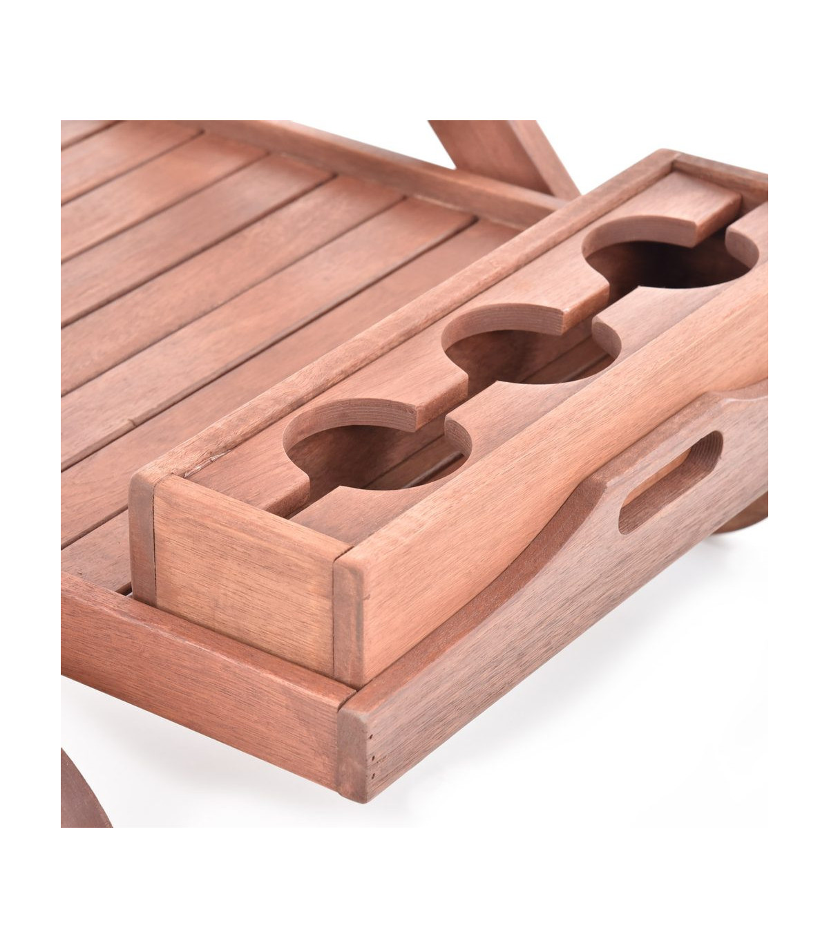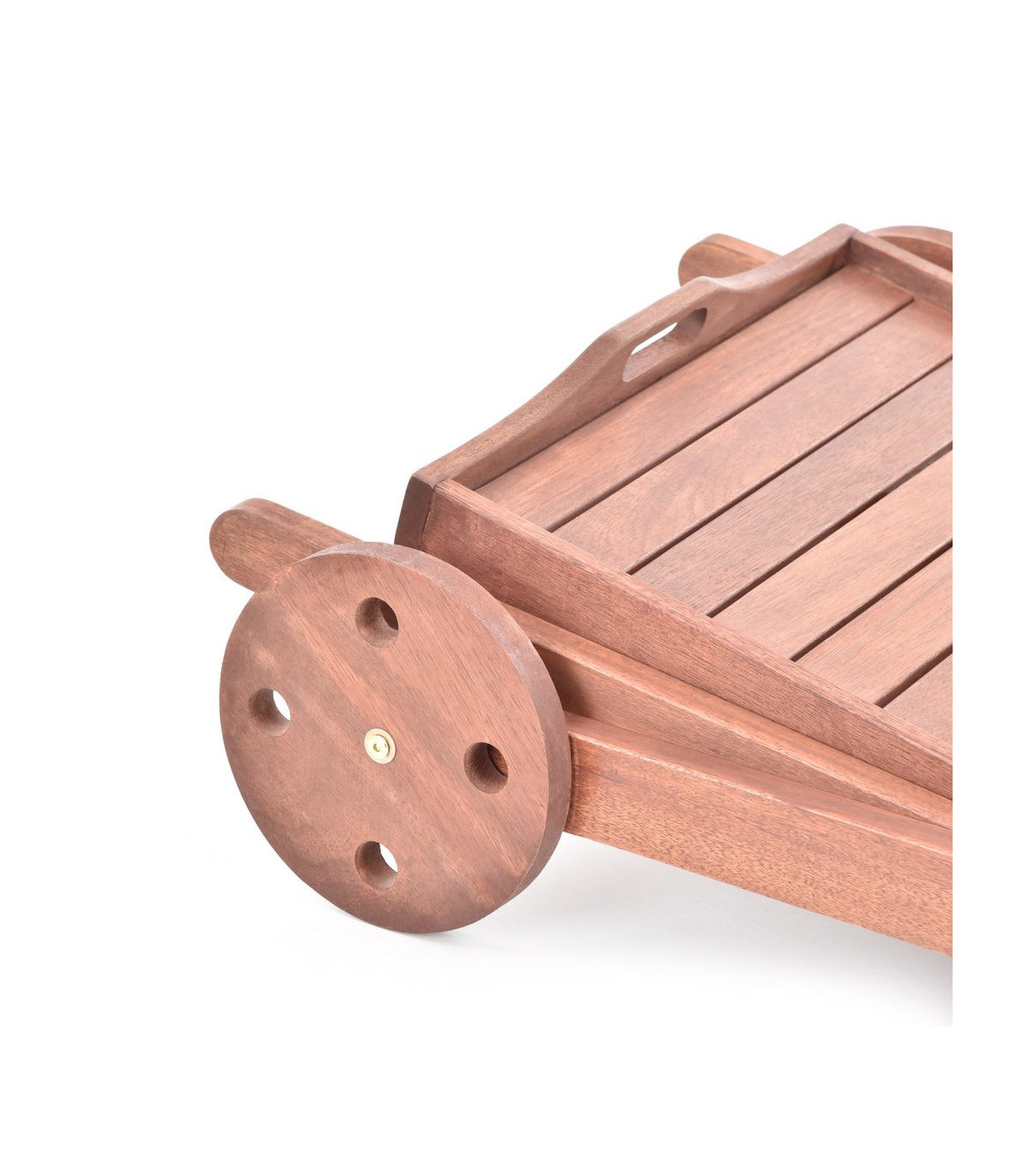 Сервировочный стол изготовлен из твердой тропической древесины меранти. Прочная конструкция. Лотки также можно использовать отдельно. Легко перемещается с помощью колес. Подходит для наружного и внутреннего использования. Его также можно использовать на открытом воздухе с соответствующей обработкой прудовым маслом. Дерево - натуральный материал, поэтому цветовой тон может отличаться от представленного на фото. Размеры: 84 х 59 х 82 см.