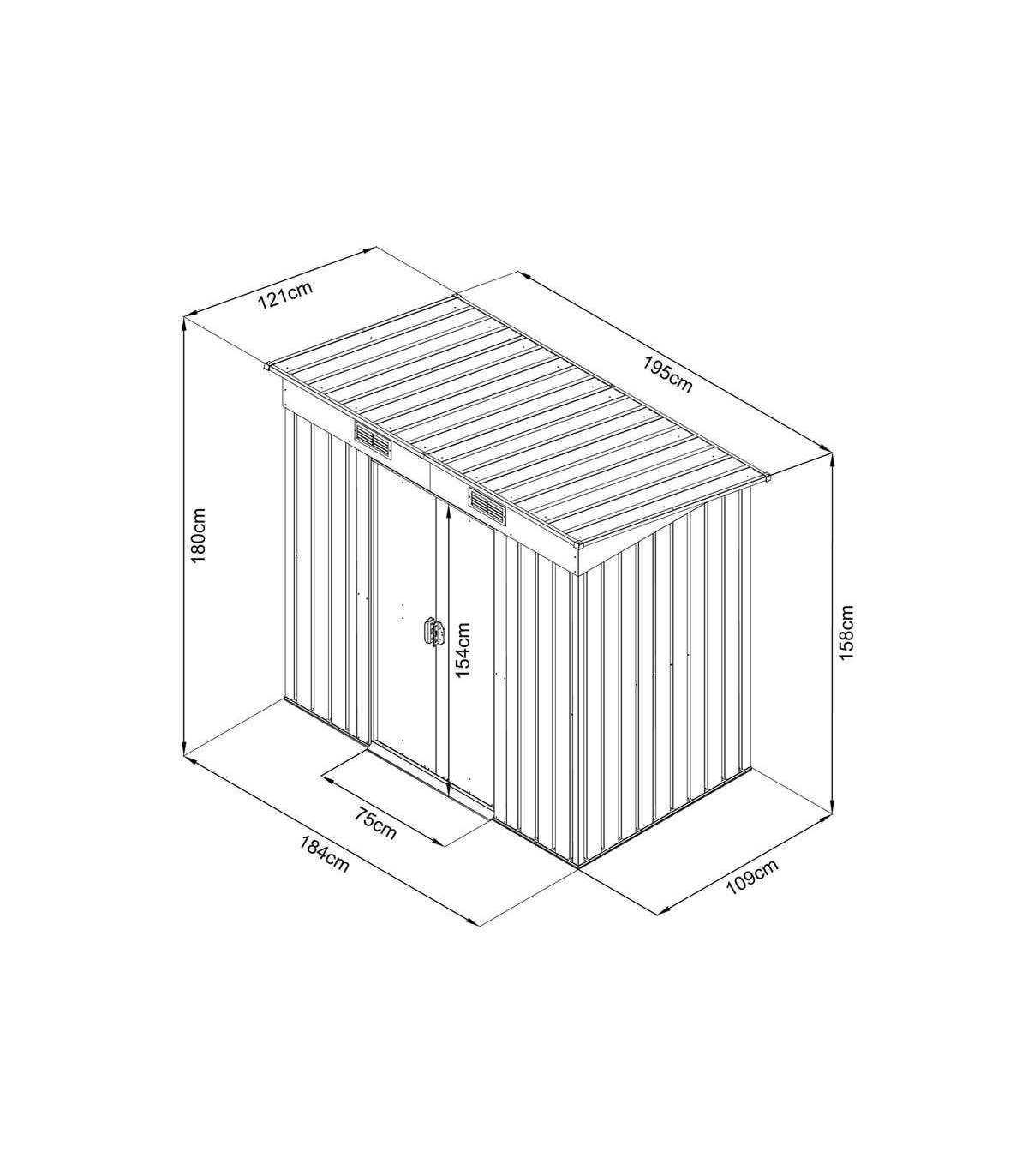 Размеры, включая свесы крыши (Д х Ш х В): 121 х 195 х 180 см.