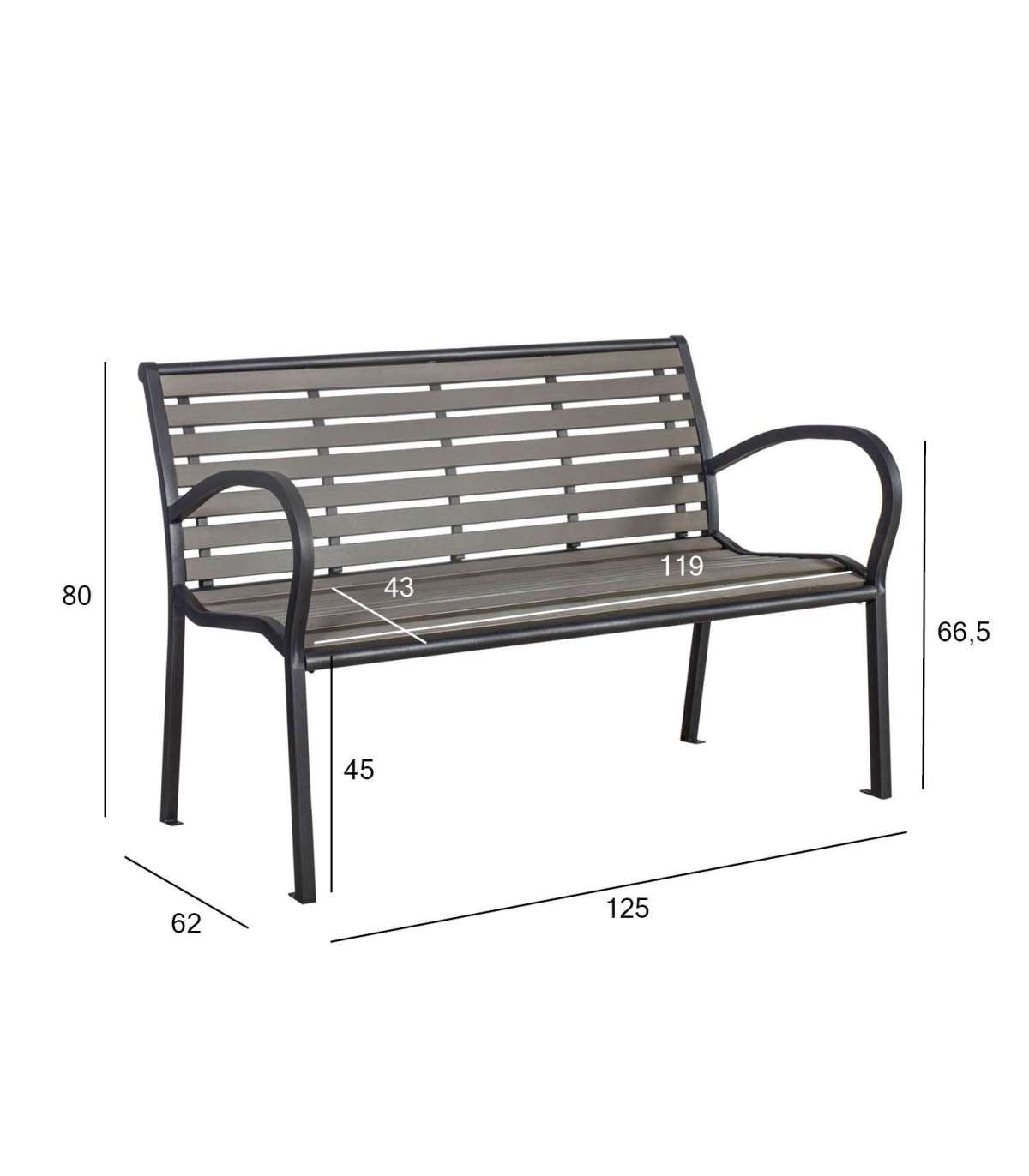 Скамья VIOLA 125x62xH80см, сиденье и спинка: искусственное дерево, цвет: серый, стальная рама, темно-серый. Товар погодоустойчив.