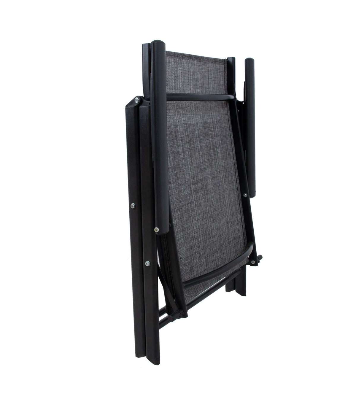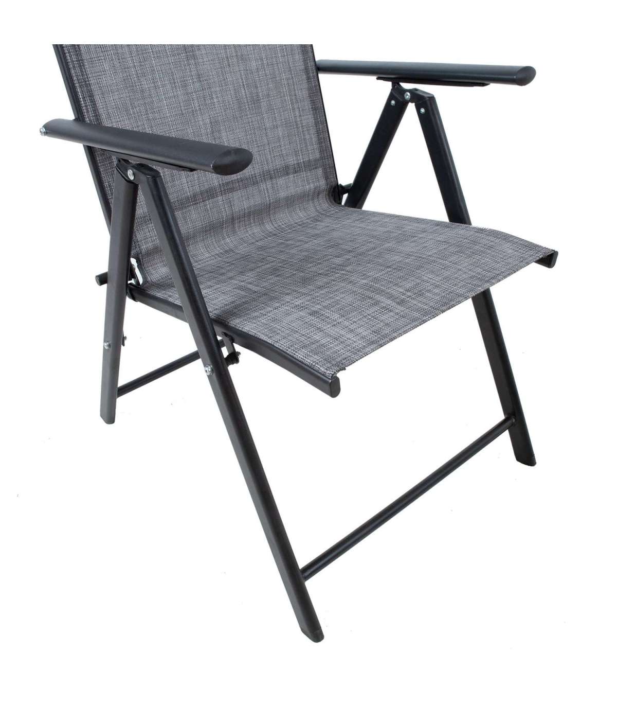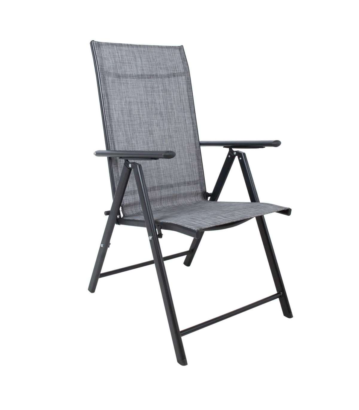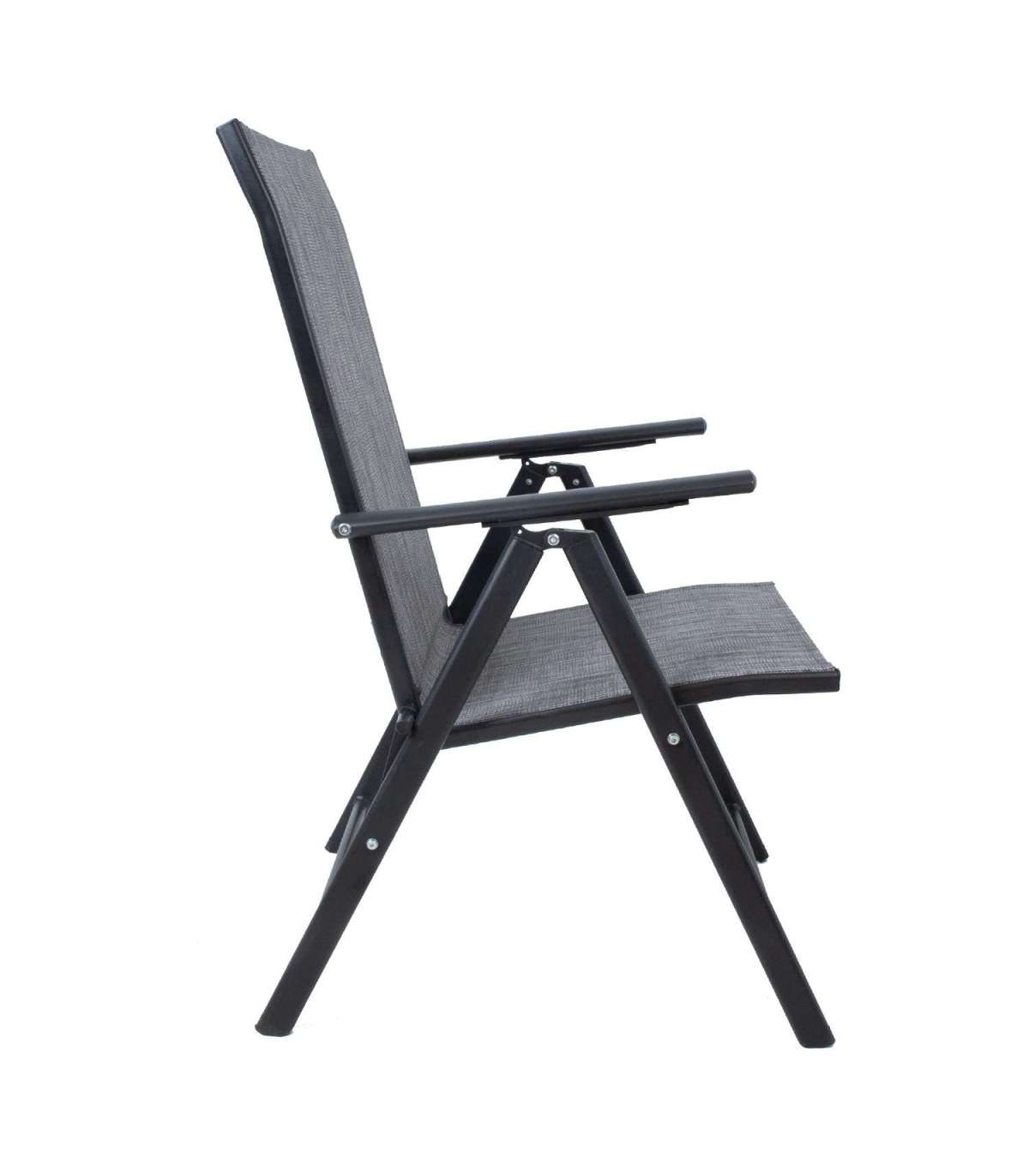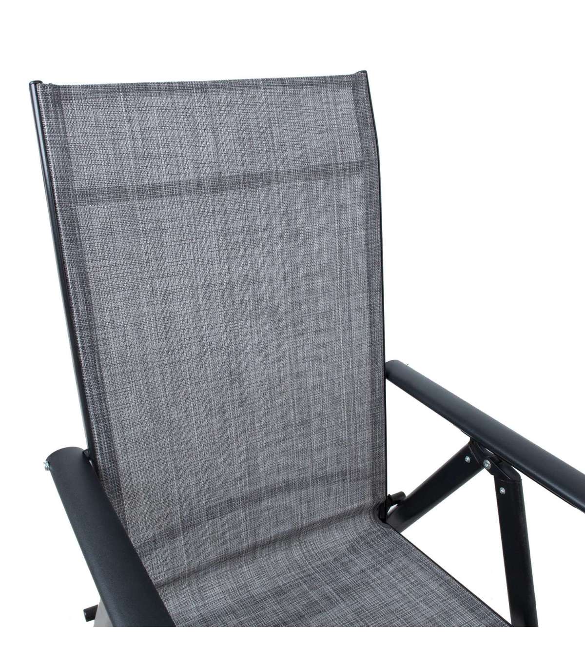 Стул DUBLIN 54x69xH102, серый. Складной садовый стул с регулируемой спинкой — удобный и практичный выбор. Текстильное сиденье стула хорошо вентилируется, быстро сохнет, легко моется. Каркас и ножки стула изготовлены из стали и окрашены порошковой краской темно-серого цвета. Чтобы отрегулировать спинку, поднимите подлокотники, выберите подходящее положение спинки и заблокируйте подлокотники. Вы можете выбрать одну из пяти различных позиций. В сложенном виде кресло удобно брать с собой или хранить. Размеры стула в сложенном виде 54х81х17см. Ширина сиденья 45см, глубина сиденья 45см, высота сиденья 44см. Высота спинки 69см, высота подлокотника от земли 63см. Ограничение по весу 100 кг.