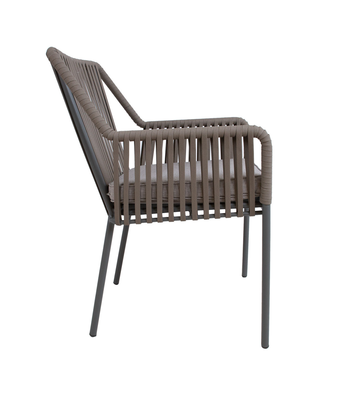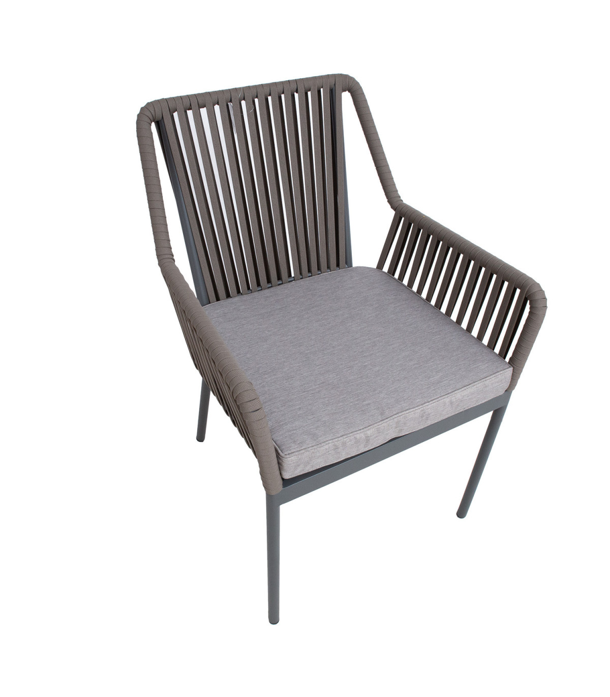 Стул ANDROS серый / серо-коричневый. Каркас кресла изготовлен из алюминия и покрыт серой порошковой краской. Спинка и подлокотники кресла обиты простой веревкой. Подушка входит в комплект. Чехол на подушку изготовлен из полиэстера. Толщина подушки сиденья 5см. Основание сиденья поддерживается алюминиевыми планками. Размеры кресла 56x57xH85см, предельный вес 100кг. Стулья можно штабелировать, их легко хранить и экономить место. Продукт долговечен в меняющихся погодных условиях и очень прост в уходе. ХРАНЕНИЕ: в конце летнего сезона рекомендуем хранить садовую мебель в помещении. Очистите и высушите мебель перед хранением. Используйте для хранения прохладное, сухое, хорошо проветриваемое помещение.