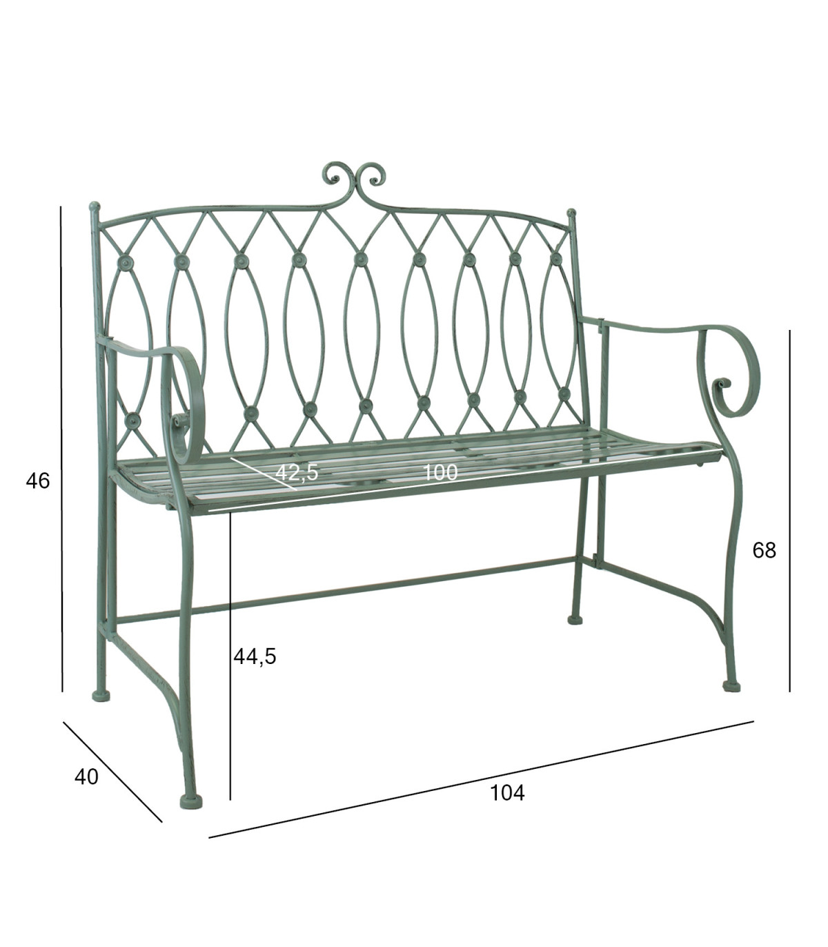 Садовая скамейка MINT 104x55xH95,5см, кованое железо, античный зеленый