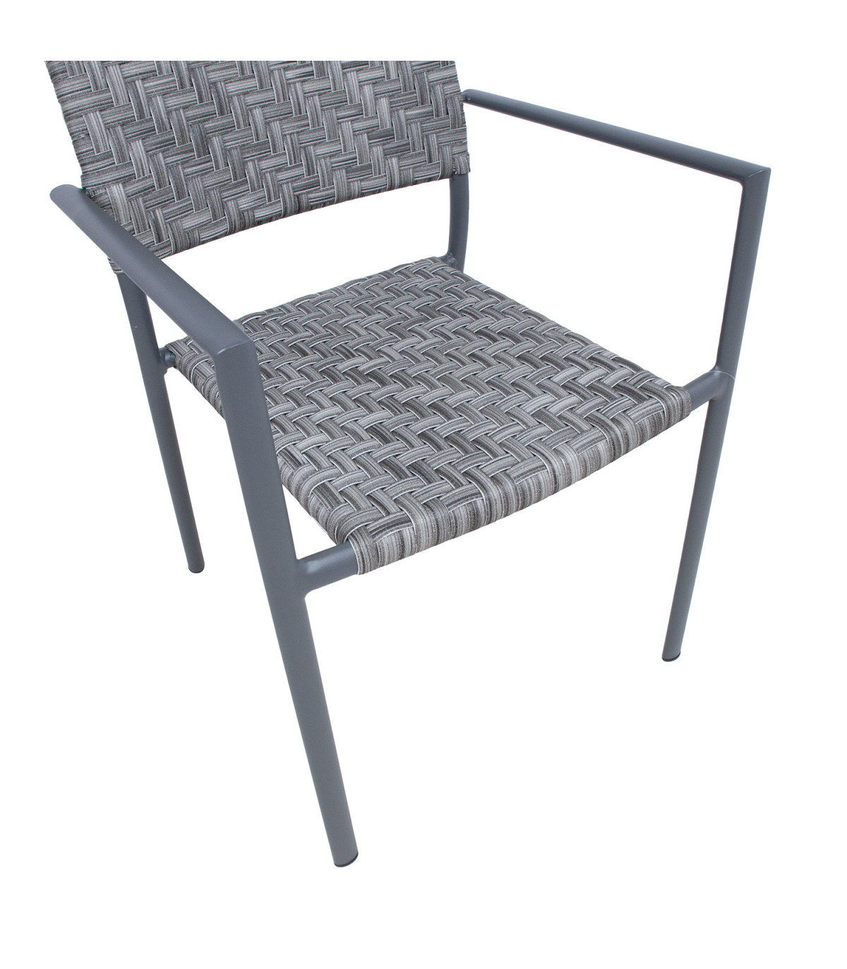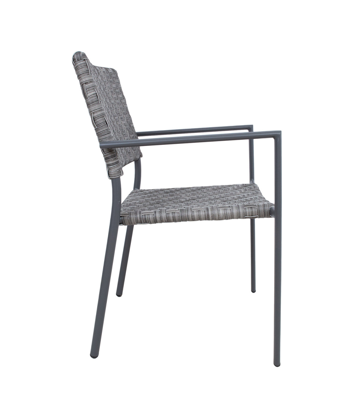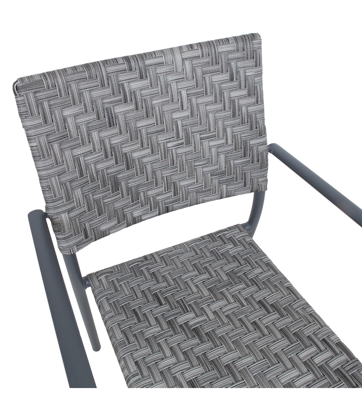 Стул CHEMNITZ серый. Сиденье и спинка стула изготовлены из сероватого пластикового плетеного ротанга. Каркас стула изготовлен из алюминия с порошковым покрытием темно-серого цвета. Размеры алюминиевой трубки 30х20мм и D25х1,7мм. Размеры кресла 54x58xH86см.