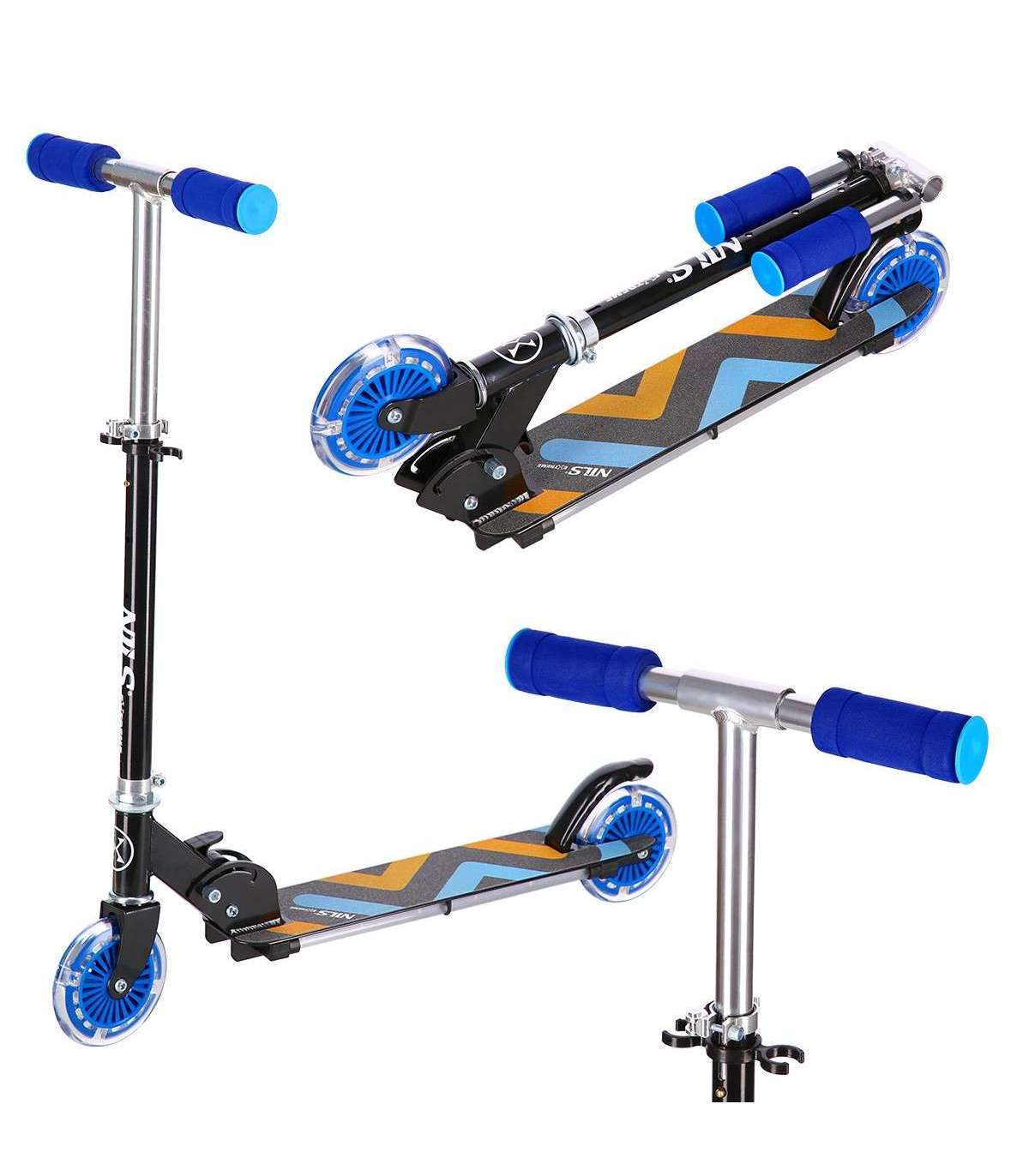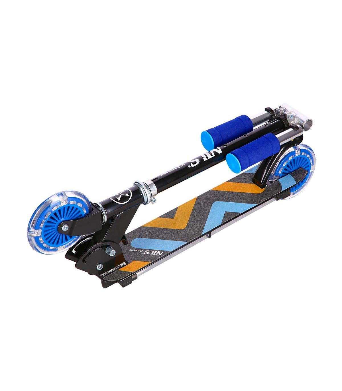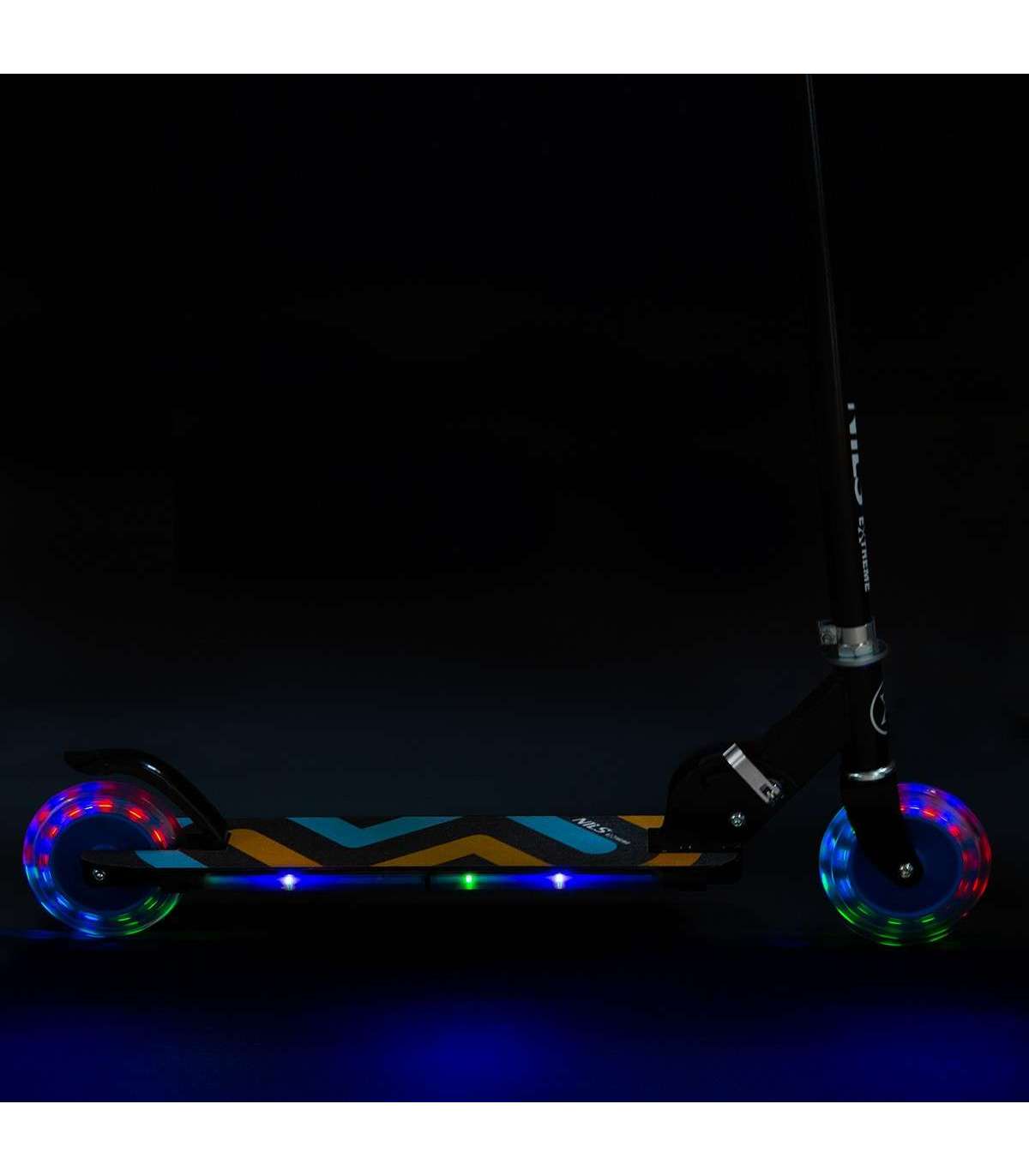 HD025 Nils Extreme — это самокат, предназначенный для детей и подростков. Его несомненными преимуществами являются современный дизайн, простота в управлении, светящаяся дека и светящиеся колеса; он идеально подходит для прогулок по асфальту, бетонным покрытиям и брусчатым тротуарам.