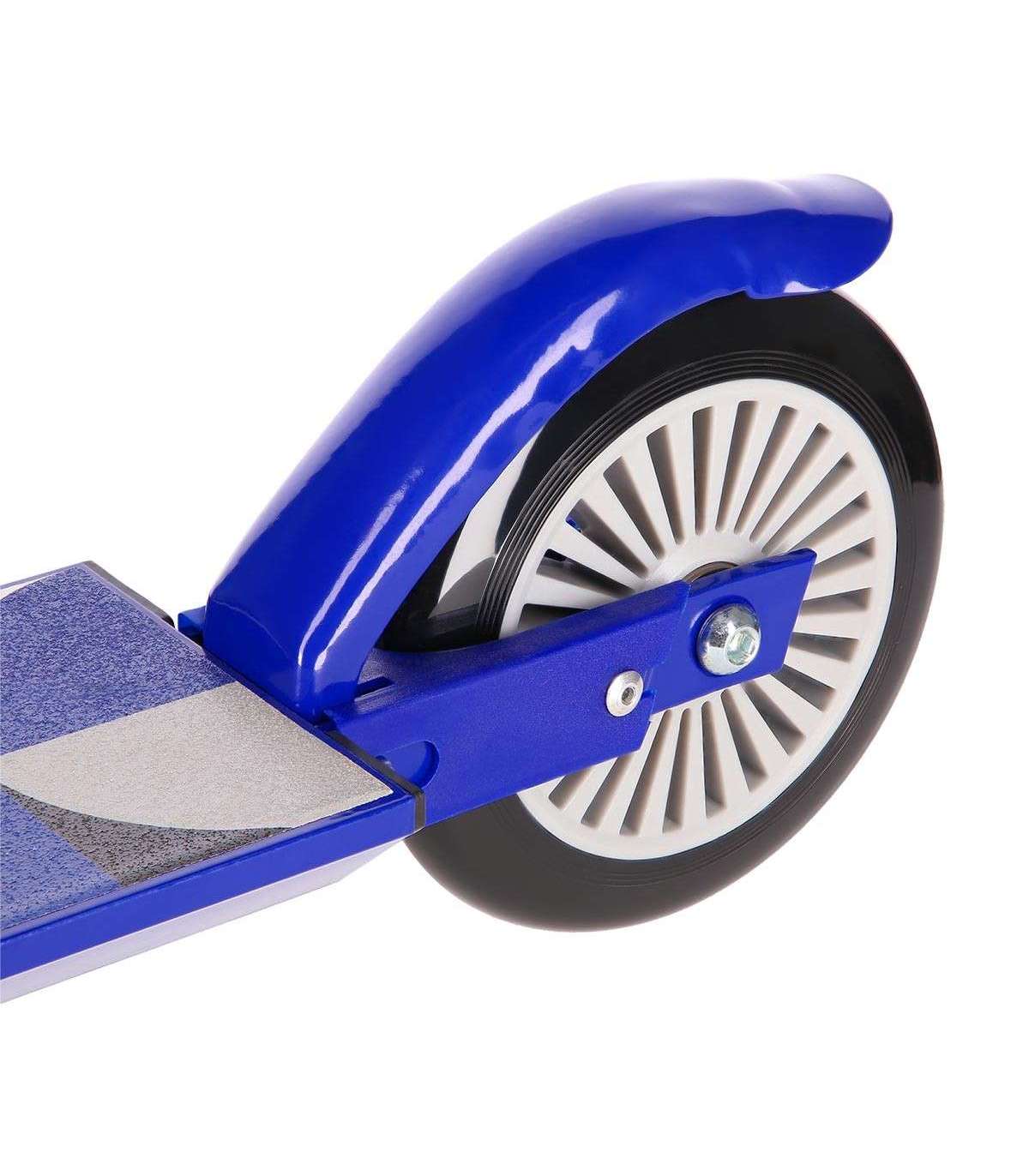 Конструкция выполнена из стали и алюминия, что делает самокат очень легким и прочным. Это обеспечивает длительный срок службы. Руль оснащен ручками, покрытыми TPR-материалом, который обеспечивает надежный захват и не вызывает потертостей. Такое решение позволяет наслаждаться ездой часами.