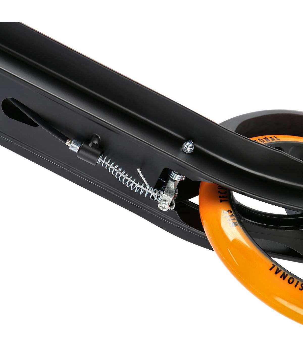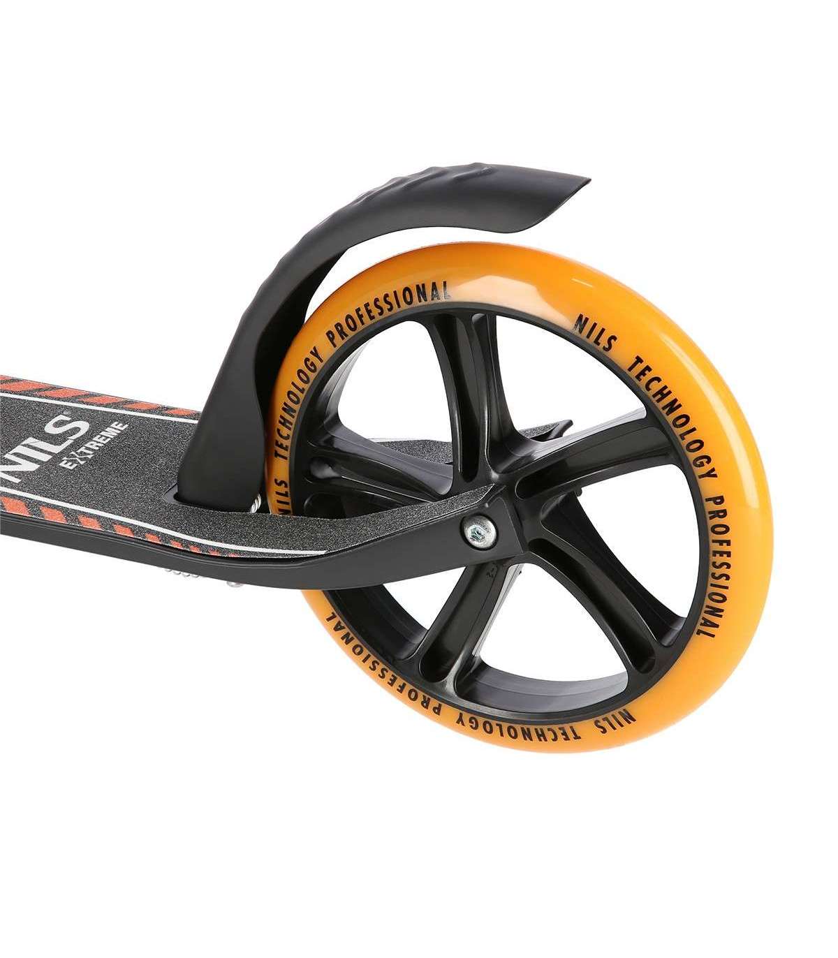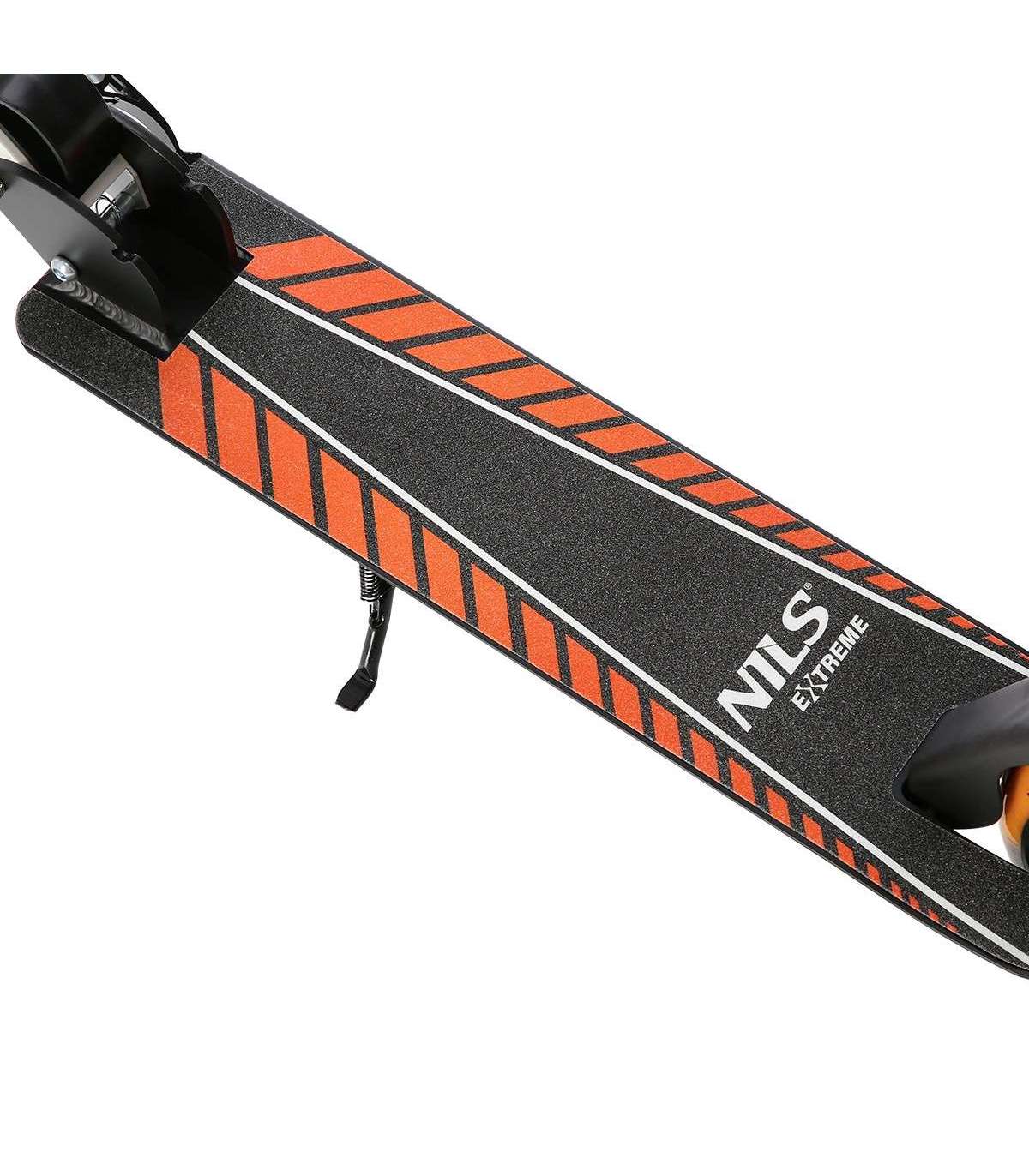 У самоката есть дополнительный ручной тормоз, расположенный на заднем колесе. Благодаря ему сила торможения намного больше, чем у классического ножного тормоза. Размещение на руле делает его гораздо интуитивнее, чем ножной тормоз, а также быстрее в использовании. И самое главное — использование такого решения обеспечивает безопасность при езде, даже на мокрой поверхности. HM0107 Nils Extreme идеально подходит для прогулочных поездок по асфальту, бетонным покрытиям и мощёным тротуарам.