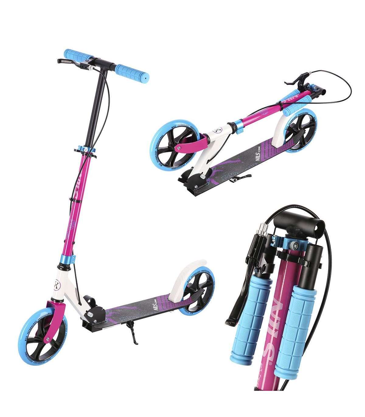 HM0107 Nils Extreme is a scooter model designed for every lover of recreational riding. Its undoubted advantage is the original design.HM0107 is made of aluminum, which is why it is very light and durable. This will allow you to use the equipment for a very long time, and thanks to its low weight, there will be no problem with its transport. The more that the scooter can be folded very easily and quickly.The scooter has very comfortable, foam handles that guarantee a secure grip and do not cause abrasions, so you can enjoy the ride for many hours. HM0107 is equipped with large wheels that allow for efficient maneuvering of the scooter and easier overcoming of unevenness. On the other hand, ABEC7 class bearings increase the stability and smoothness of the ride. All this contributes to high comfort of use and driving pleasure. In addition, the three-step steering wheel adjustment option gives you the opportunity to adjust the equipment to individual needs.The scooter has an additional hand brake located on the rear wheel. Thanks to it, we get much greater braking power than in the case of a classic foot brake. Placing it on the steering wheel makes it much more intuitive than the foot brake, and it is also much faster to use. And most importantly, the use of such a solution ensures driving safety, even on a wet surface.HM0107 Nils Extreme is perfect for both recreational riding on asphalt, concrete surfaces and paved sidewalks.Specification:Material: Aluminum, steelThe type of material on the landing: AluminumBearings: ABEC7Wheels: 200 mm/82AFoldable: takFooter: takBrake: yes manualDimensions when unfolded:Lenght: 92 cmWidth: 39 cmHeight: 76,5 – 100,5 cmFolded dimensions:Lenght: 79 cmWidth: 11,5 cmHeight: 33,5 cmPlatform dimensions:Lenght: 33,5 cmWidth: 11,5 cmMaximum user weight: 100kgProduct weight: 3,3 kgRemarks:Not for commercial use24 months warrantyImporter: Abisal Ltd. | Poland | 41-807 Zabrze | Pyskowicka Street 17 | e-mail: abisal@abisal.plAbisal Ltd.. declares that the products sold by the company are safe and meet the requirements contained in the Act on General Product Safety of December 12, 2003. (Journal of Laws of December 31, 2003)