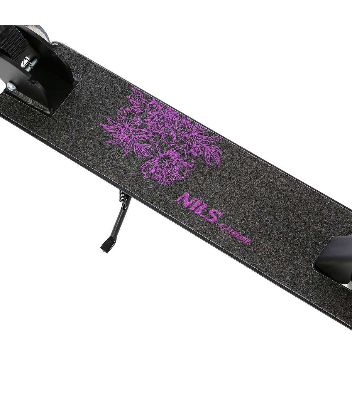 HM603 Nils Extreme is a scooter model designed for every lover of recreational riding. Its undoubted advantage is the original design.HM603 is made of aluminum, which is why it is very light and durable. This will allow you to use the equipment for a very long time, and thanks to its low weight, there will be no problem with its transport. The more that the scooter can be folded very easily and quickly.The scooter has very comfortable, foam handles that guarantee a secure grip and do not cause abrasions, so you can enjoy the ride for many hours. HM603 is equipped with large wheels that allow for efficient maneuvering of the scooter and easier overcoming of unevenness. On the other hand, ABEC7 class bearings increase the stability and smoothness of the ride. All this contributes to high comfort of use and driving pleasure. In addition, the three-step steering wheel adjustment option gives you the opportunity to adjust the equipment to individual needs.HM603 Nils Extreme is perfect for both recreational riding on asphalt, concrete surfaces and paved sidewalks.Specification:Material: Aluminum, steelThe type of material on the landing: AluminumBearings: ABEC7Wheels: 200 mm/82AFoldable: takFooter: takBrake: yes manualDimensions when unfolded:Lenght: 90 cmWidth: 32,5 cmHeight: 76 – 98 cmFolded dimensions:Lenght: 79,5 cmWidth: 11,5 cmHeight: 30,5 cmPlatform dimensions:Lenght: 33 cmWidth: 11,5 cmMaximum user weight: 100kgProduct weight: 3,4 kgRemarks:Not for commercial use24 months warrantyImporter: Abisal Ltd. | Poland | 41-807 Zabrze | Pyskowicka Street 17 | e-mail: abisal@abisal.plAbisal Ltd.. declares that the products sold by the company are safe and meet the requirements contained in the Act on General Product Safety of December 12, 2003. (Journal of Laws of December 31, 2003)
