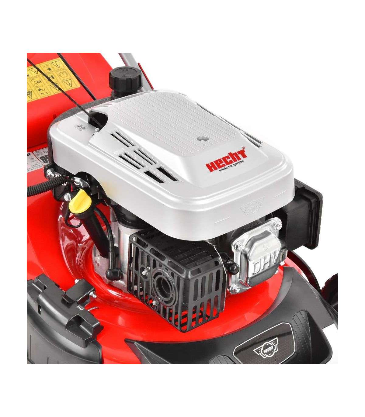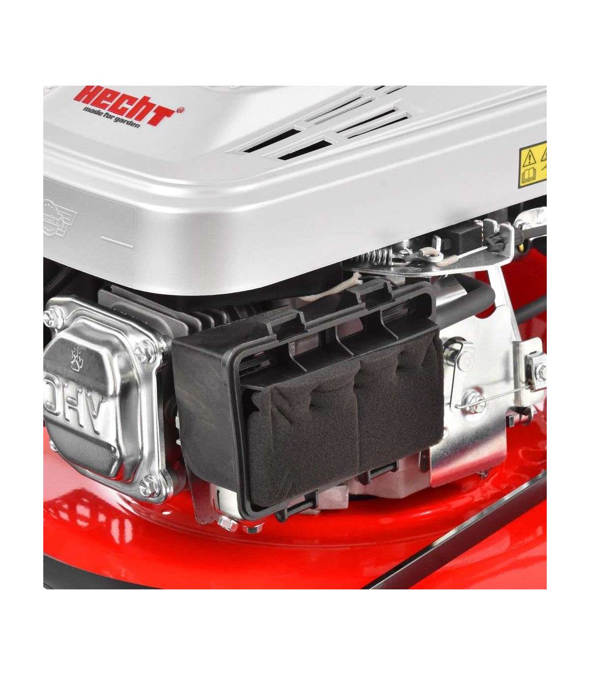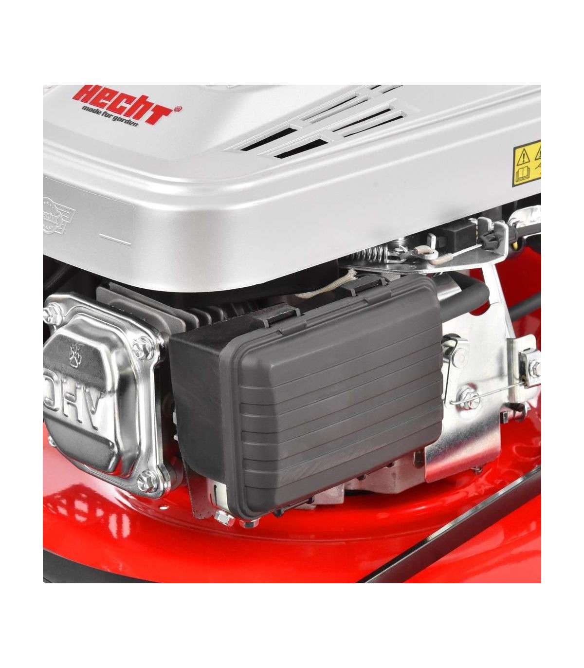 Self propelled petrol powered rotary lawn mower with steel chassis, equipped with ball bearings. Powered by 4 stroke HECHT OHV engine with displacement of 135 cm3. Working width 46 cm. Suitable for areas of up to 1200 m2. Central adjustment of cutting height 25 - 75 mm . Mulching kit included, alternative side ejection. Electric starting with key. Patented wheels design. Textile coolecting box 60 litres. Weight 39 kg.