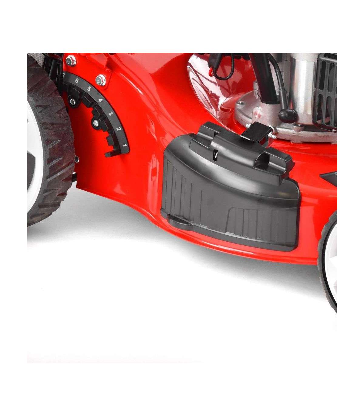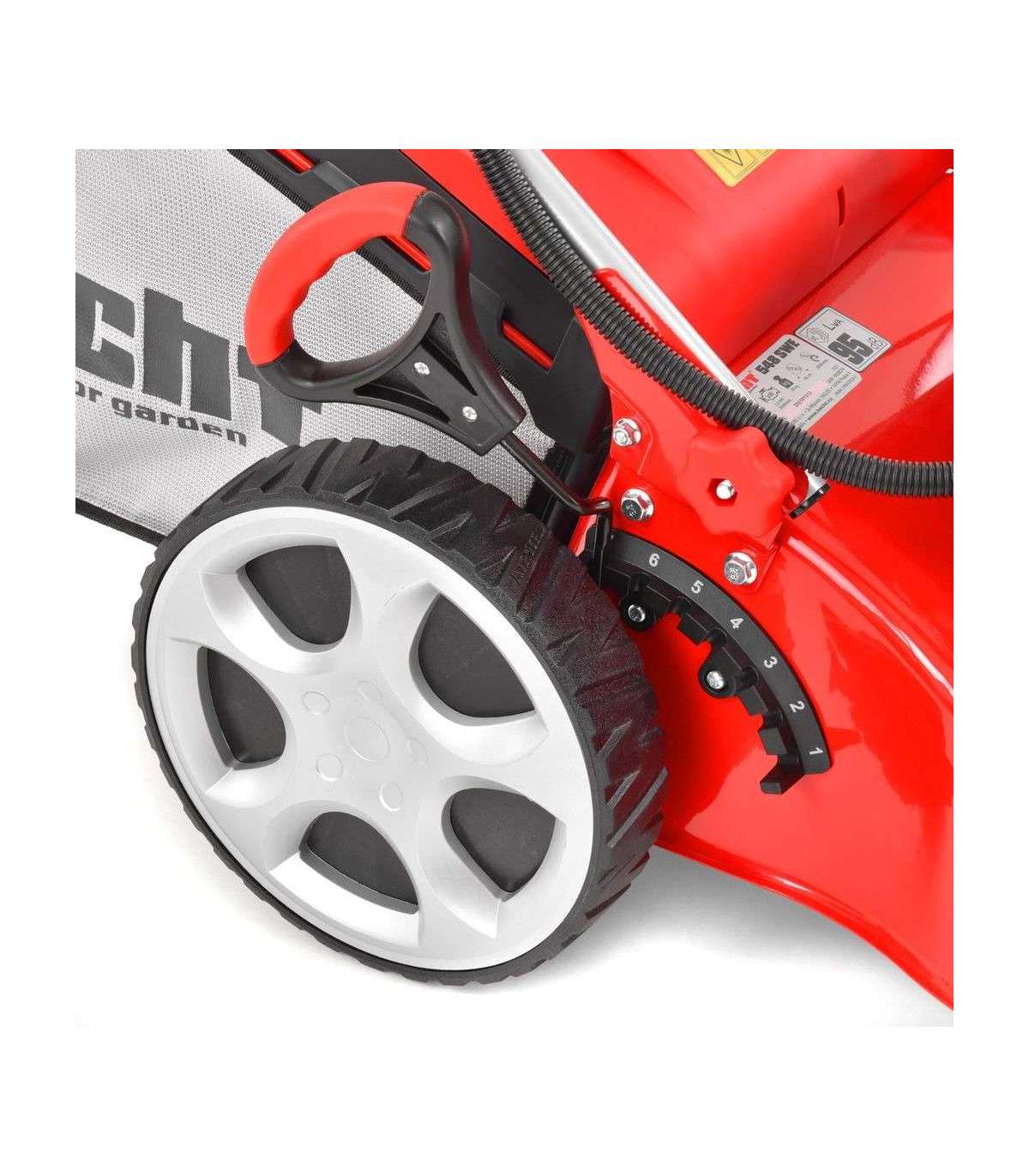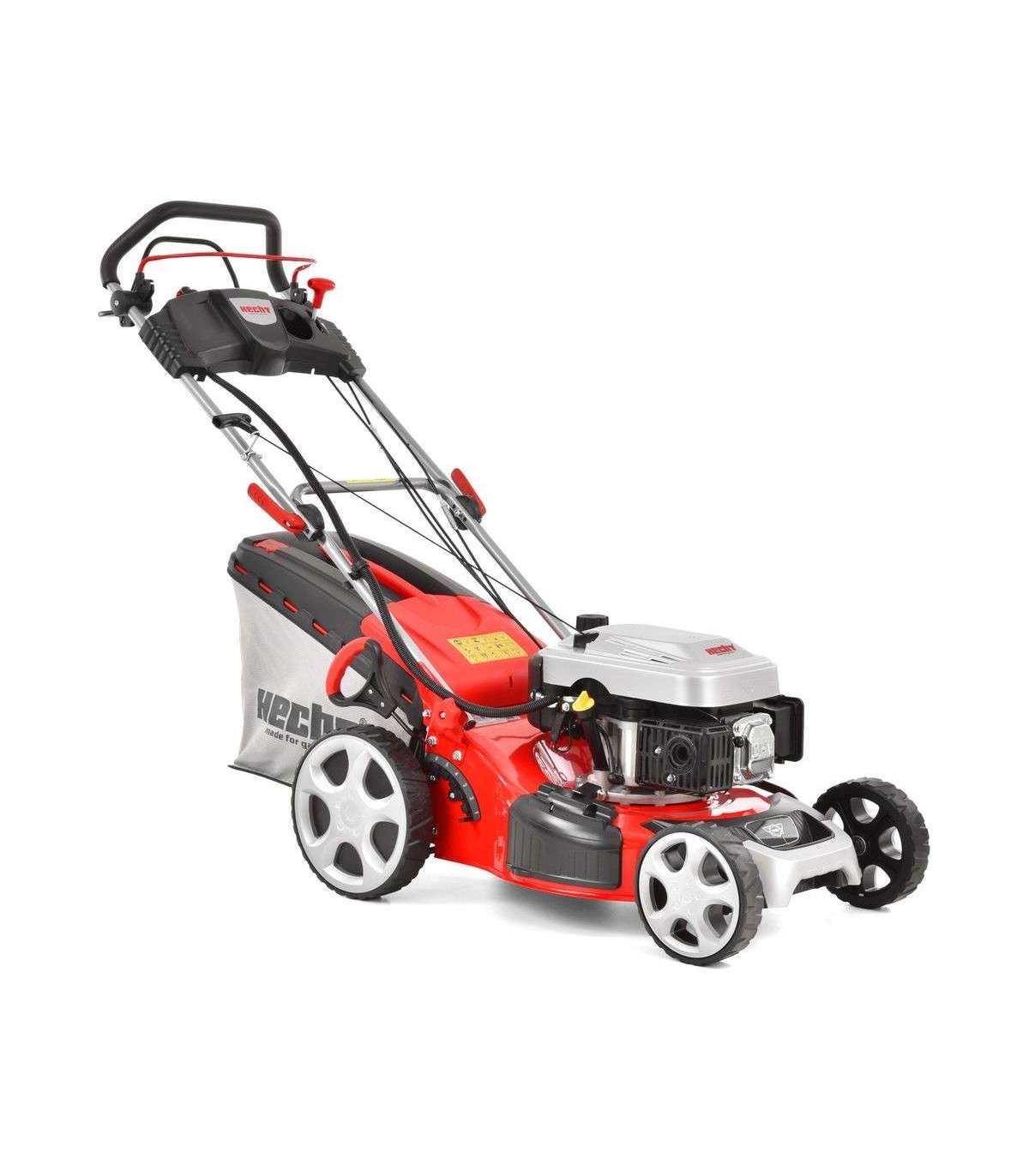 Self propelled petrol powered rotary lawn mower with steel chassis, equipped with ball bearings. Powered by 4 stroke HECHT OHV engine with displacement of 135 cm3. Working width 46 cm. Suitable for areas of up to 1200 m2. Central adjustment of cutting height 25 - 75 mm . Mulching kit included, alternative side ejection. Electric starting with key. Patented wheels design. Textile coolecting box 60 litres. Weight 39 kg.