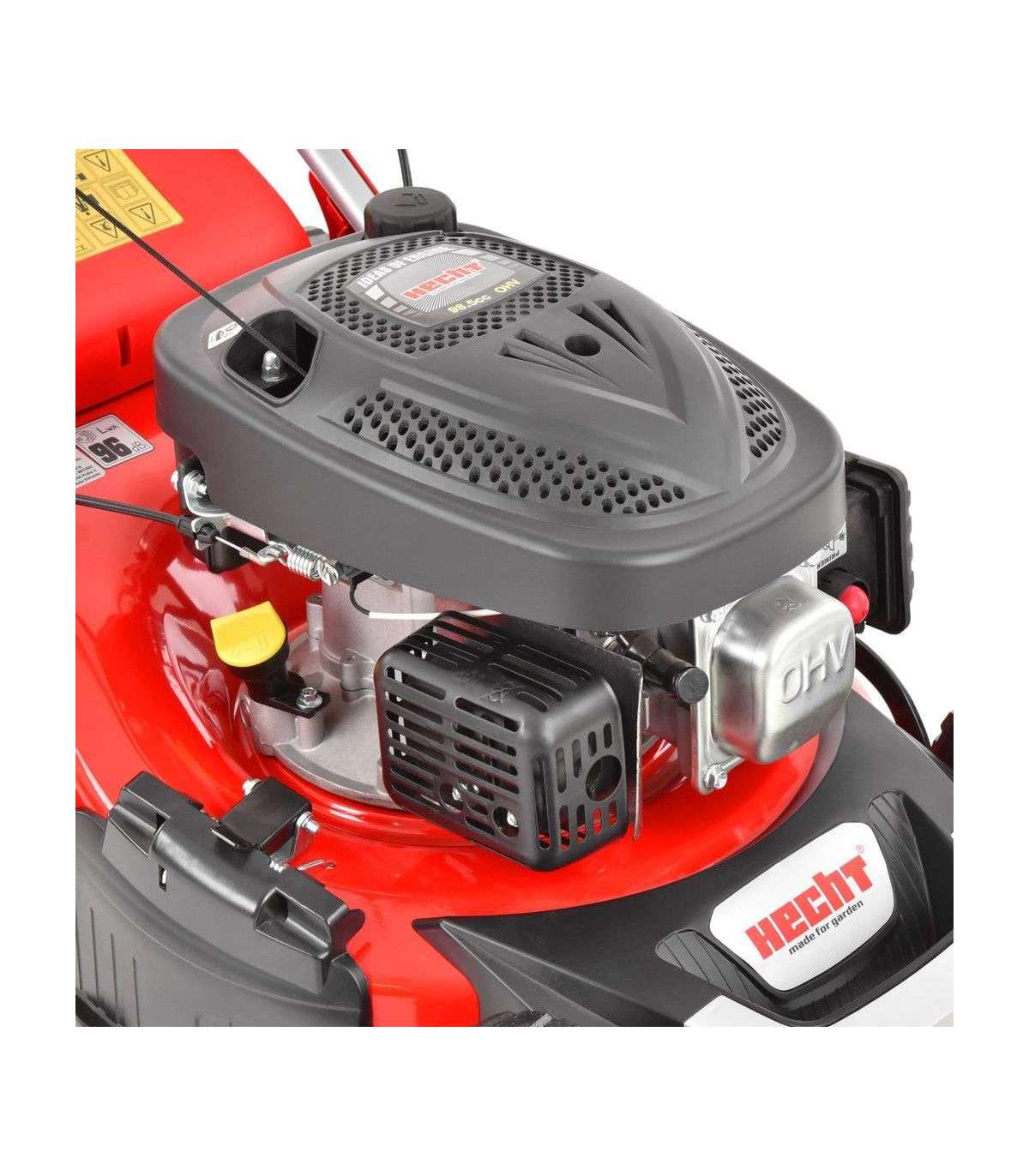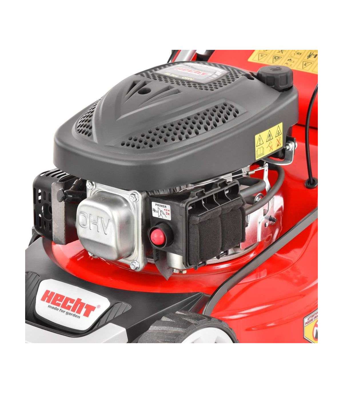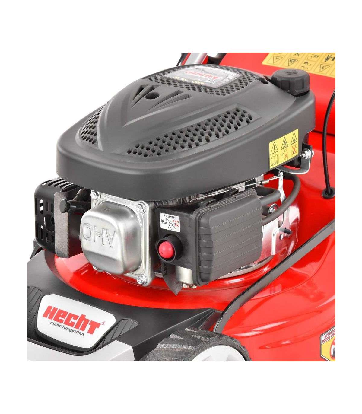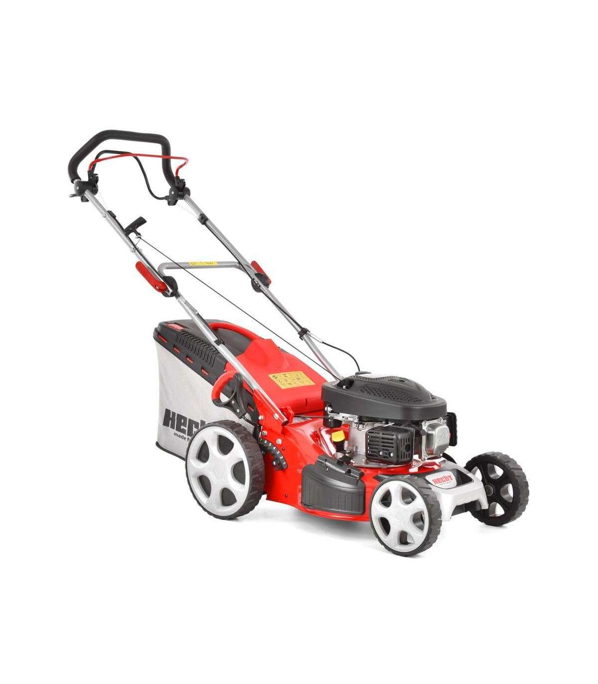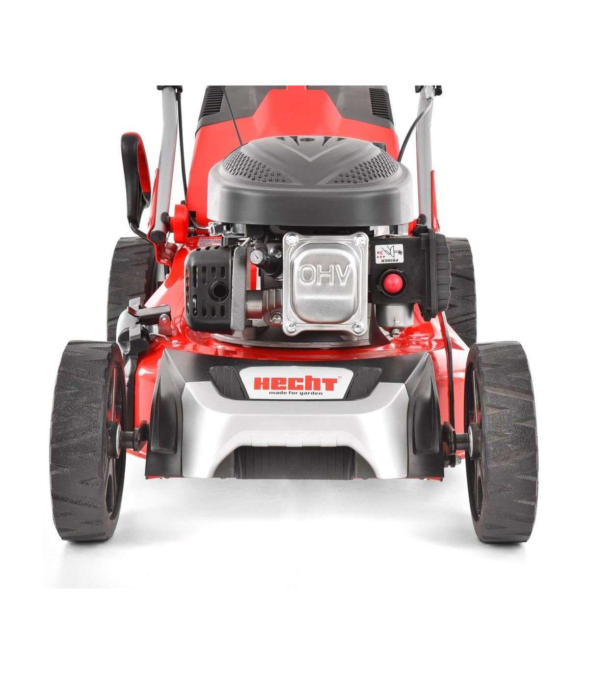 Бензиновая газонокосилка с приводом – самоходная, стальное шасси. Двигатель 4-тактный Hecht OHV. Захват ножа 43 см. Центральная pегулировка высоты кошения, шарикоподшипники.