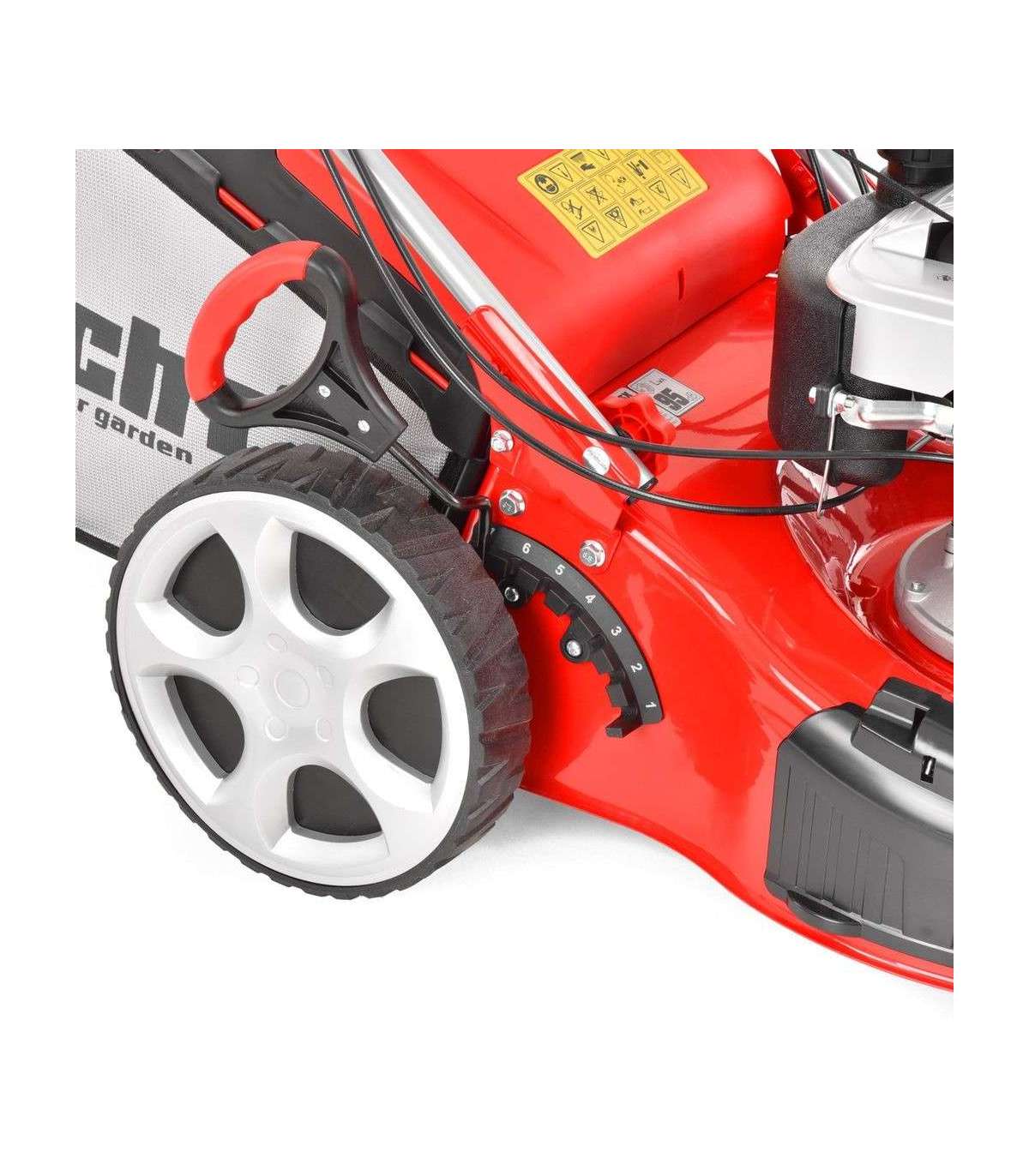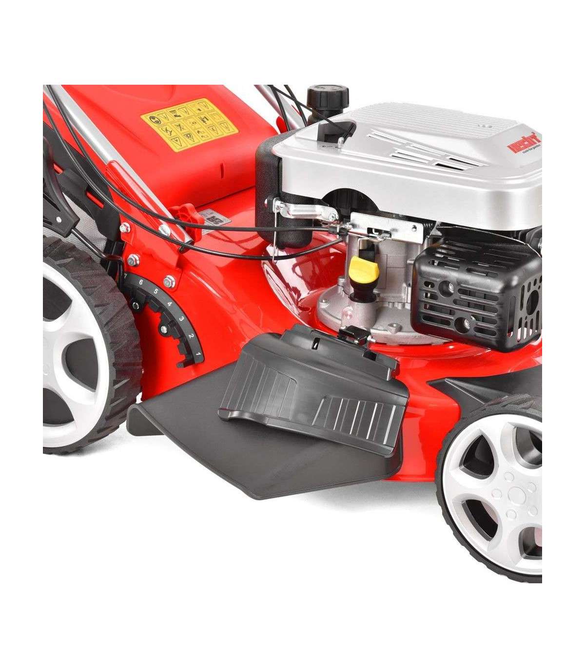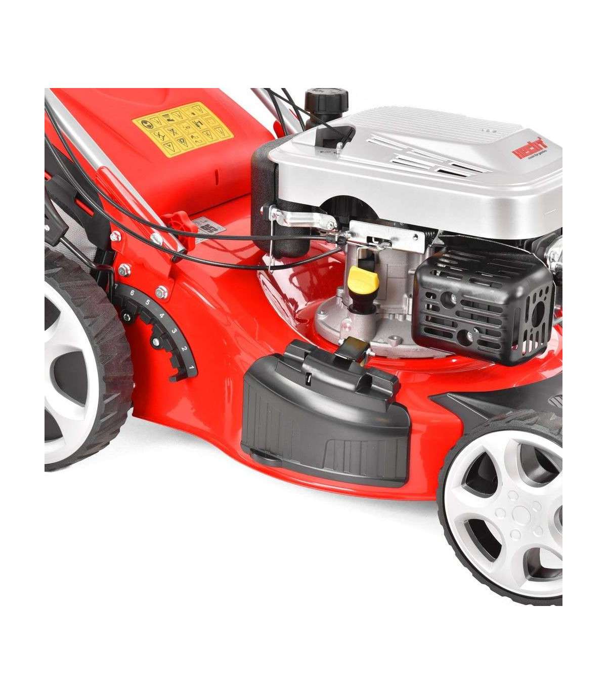 Бензиновая газонокосилка с приводом – самоходная, стальное шасси. Двигатель 4-тактный OHV 135 cm3. Захват ножа 46 см с рекомендуемой площадью кошения 1200 м2. Центральная pегулировка высоты кошения, шарикоподшипники. Yстановка высоту кошения: центральная, 25-75 мм. 4 скорости 3 - 4,5 km/h. Травосборник: 60 литров. Вес: 36,7 кг. Колеса спереди 8 "/ сзади 11".