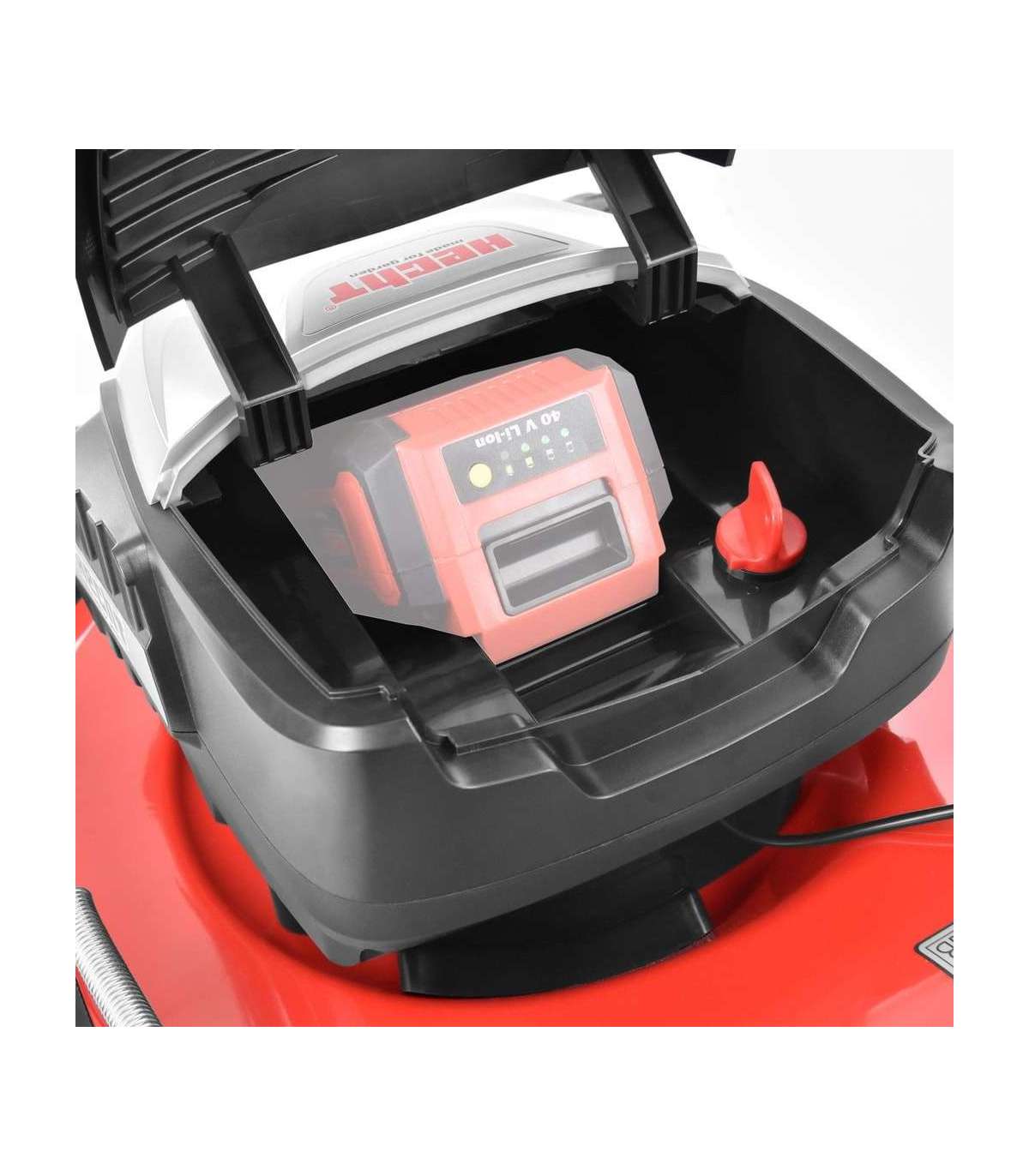Akuga muruniiduk, töölaius 41 cm. Liitiumaku 2.5 / 4 / 5 Ah, pinge 40 V. Aku ja laadija ei kuulu komplekti! Isevedav. Kogumiskorvi maht 50 l. Reguleeritav ergonoomiline käepide. Tsentraalne kõrguse reguleerimine, lõikekõrgus 25–75 mm. Töökiirus 3300 p/min. Suured rattad läbimõõduga ees / taga 6”/7”. Metallist šassii. Kaal 21.3 kg.