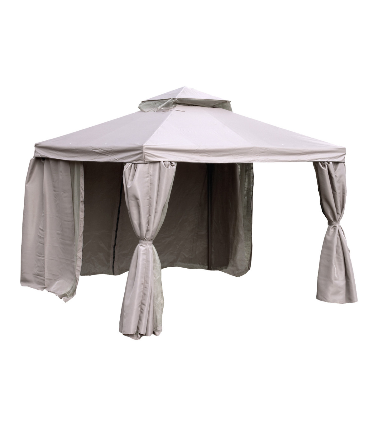 Шатёр LEGEND 2,91x3,91x2/2,8м, бежевый, рама: алюминий, крыша и стенки: ткань полиэстер. По краям сетка от комаров. ВНИМАНИЕ: шатёр должен быть фиксирован на поверхность. Шатёр не предназначен для использования при сильном ветре и дожде. Продавец не несет ответственности за повреждения, вызванные погодными условиями.