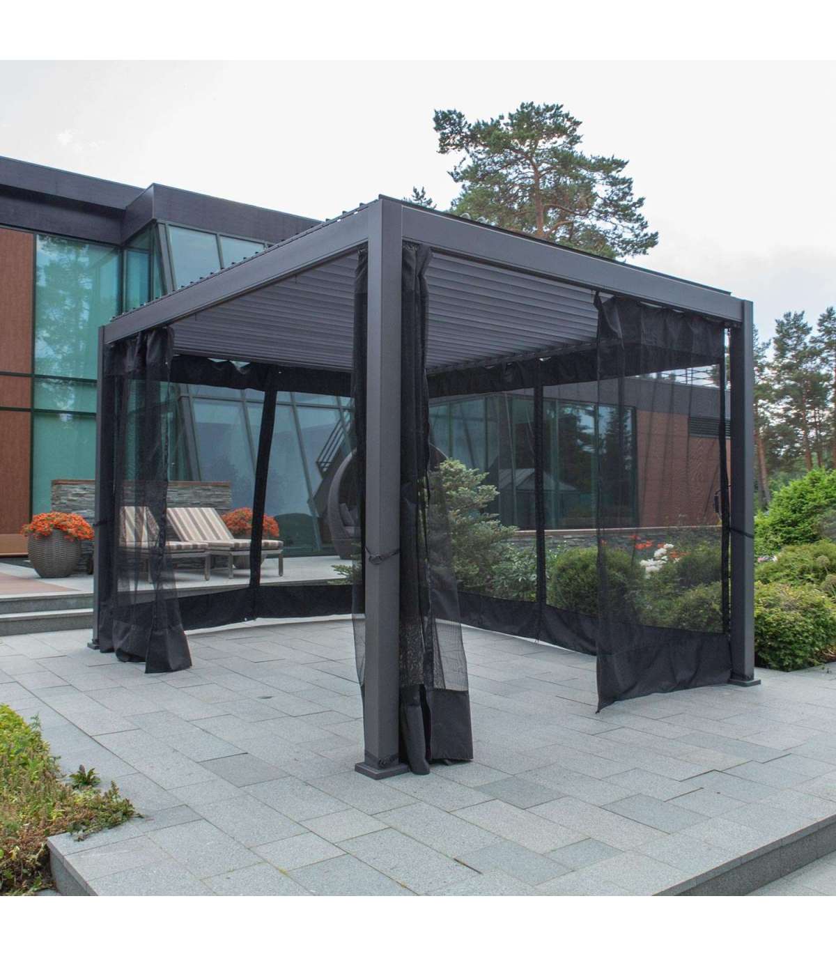 Москитная сетка для беседки MIRADOR 3х4м. Шторы изготовлены из черной полиэстеровой сетки плотностью 70 г/м?. В комплект входят шторы с молниями на все 4 стороны беседки. Карнизы и крючки для подвешивания в комплект не входят. В дополнение к москитным сеткам также доступны шторы из полиэстера или текстиля, выдвижные сетки и стены с жалюзи. Ознакомьтесь со всей подборкой дополнительного оборудования для навесов MIRADOR! С помощью различных типов стен или штор легко изменить функциональность и внешний вид беседки и сделать ее еще более удобной. ХРАНЕНИЕ: по окончании летнего сезона рекомендуем снять москитные сетки с навеса. Очистите и высушите противомоскитные сетки перед хранением. Для хранения используйте сухое и хорошо проветриваемое помещение.