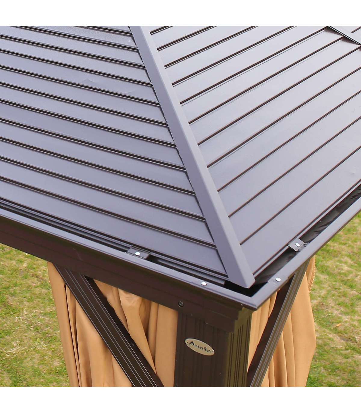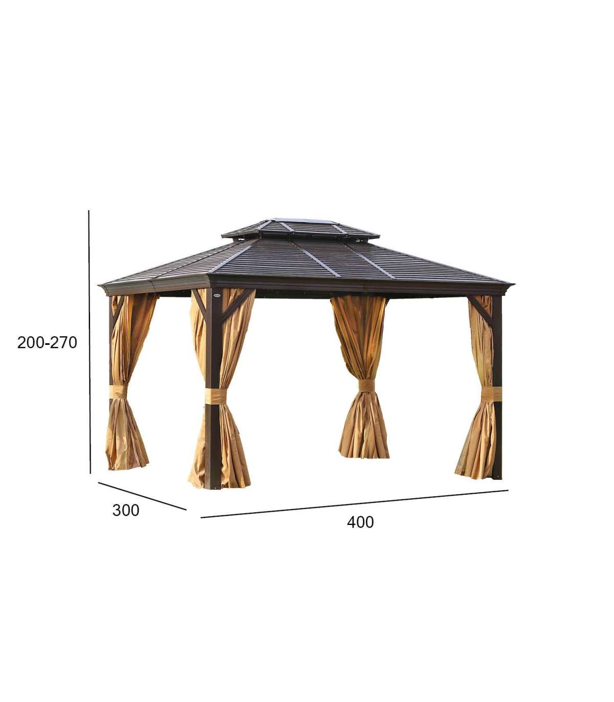 Шатёр SUNSET 3x4x2/2,7м, коричневая алюминиевая рама, металлическая крыша, по бокам бежевые стенки и сетки из textiline