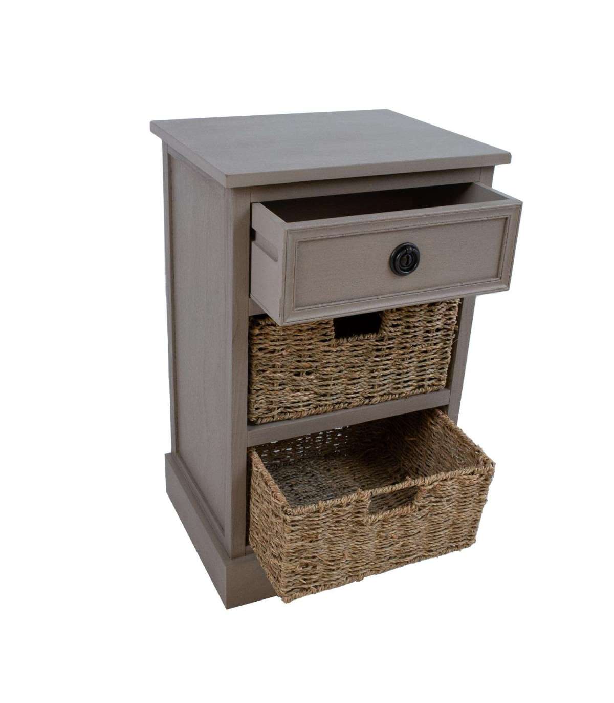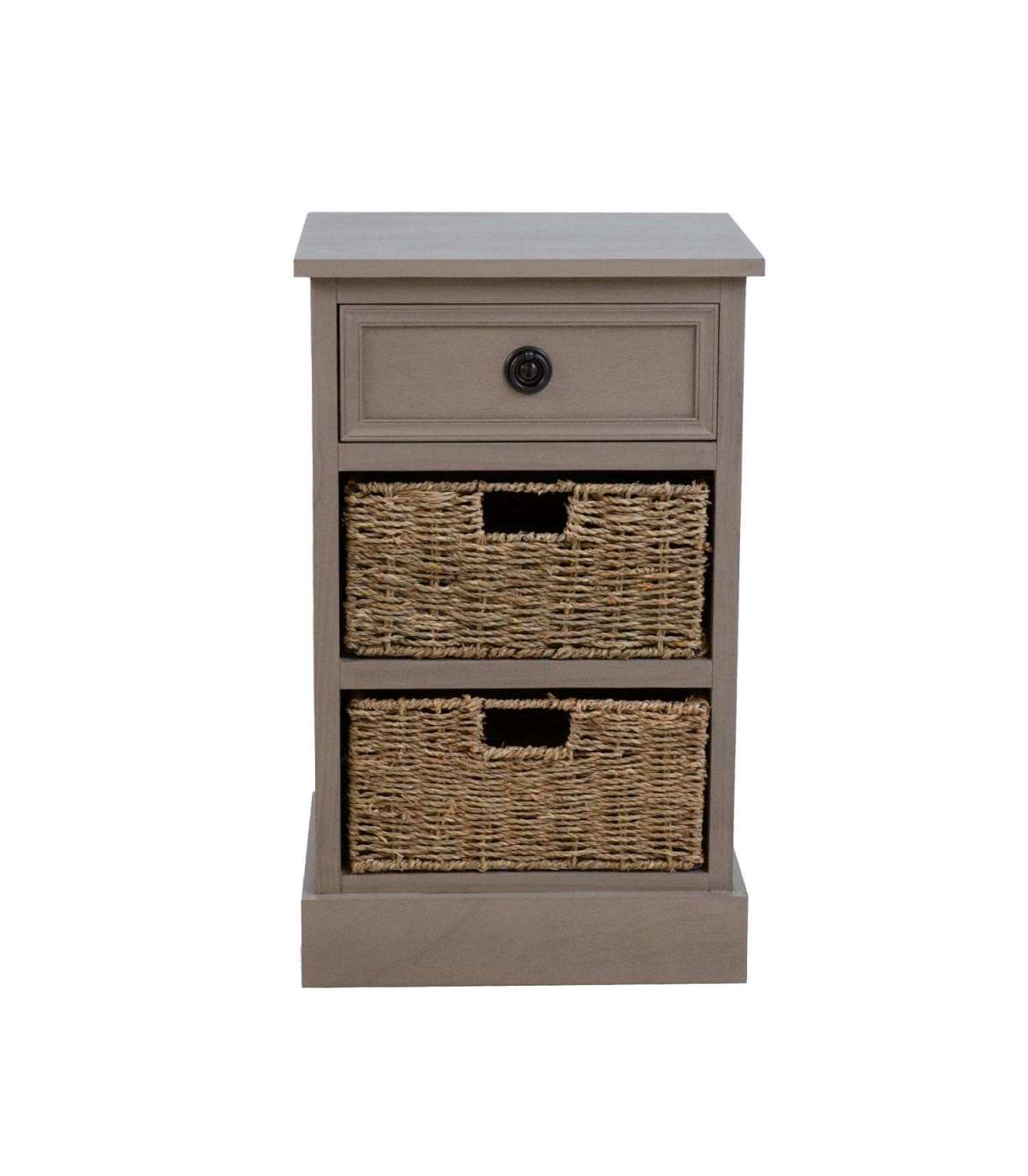 Kummuti põhikonstruktsioon ja sokkel on valmistatud männipuidust. Pealmine lauaplaat ja sahtel on värvitud MDF. Kummut on viimistletud värviga. Punutud sahtlid on valmistatud mererohust. Ülemisel sahtlil on metallist käepide.