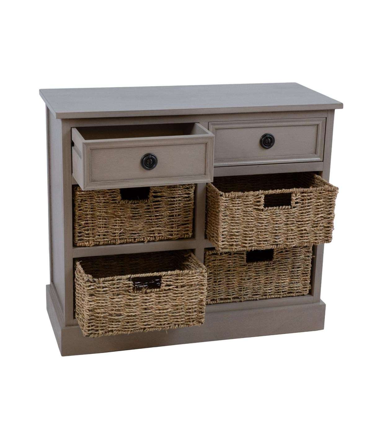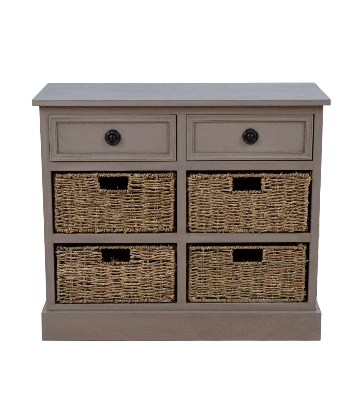 Kummuti põhikonstruktsioon ja sokkel on valmistatud männipuidust. Pealmine lauaplaat ja sahtel on värvitud MDF. Kummut on viimistletud värviga. Punutud sahtlid on valmistatud mererohust. Ülemistel sahtlitel on metallist käepidemed.