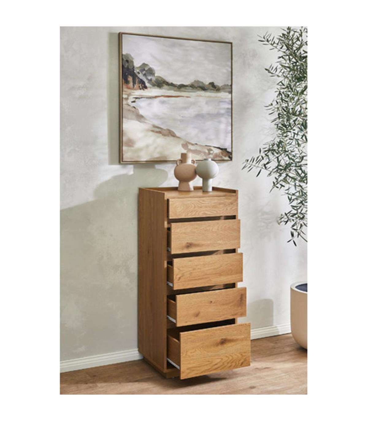 Kummut SACHA 5-sahtliga 50x40xH109cm, tammedekooriga melamiin.
