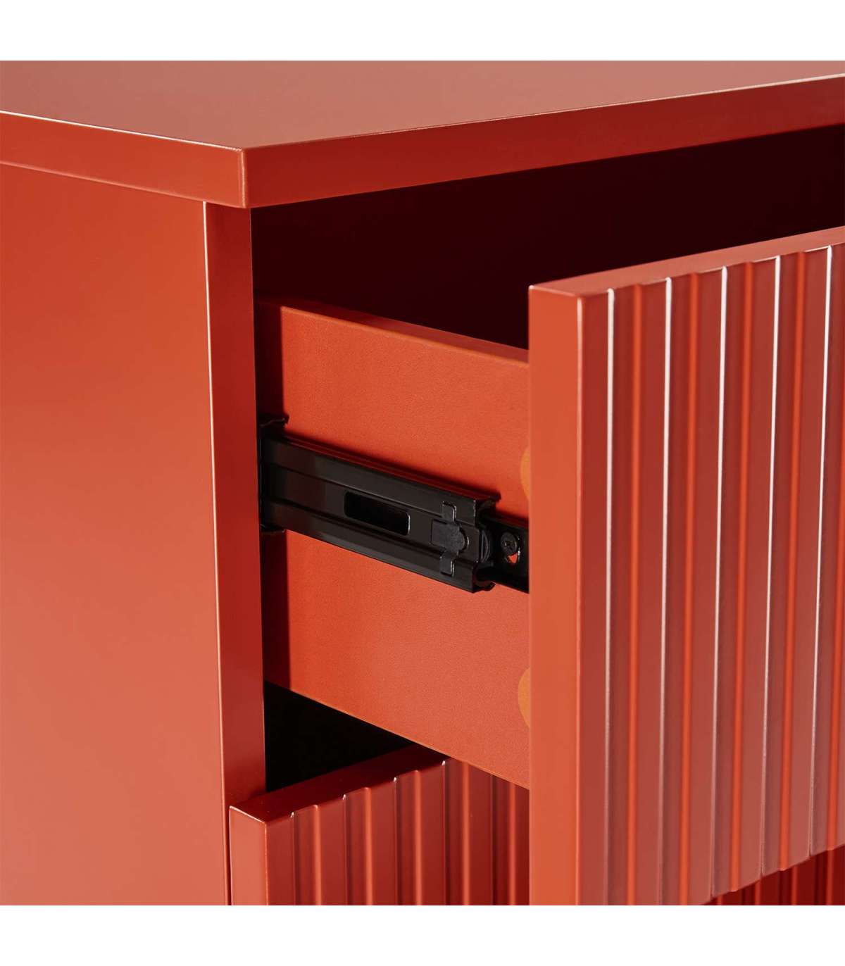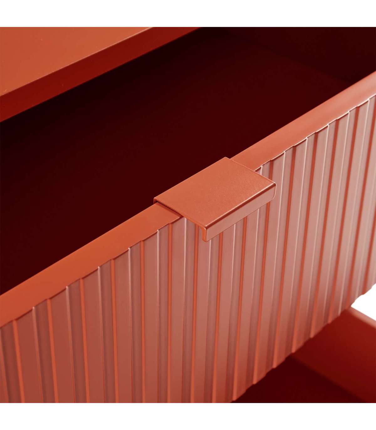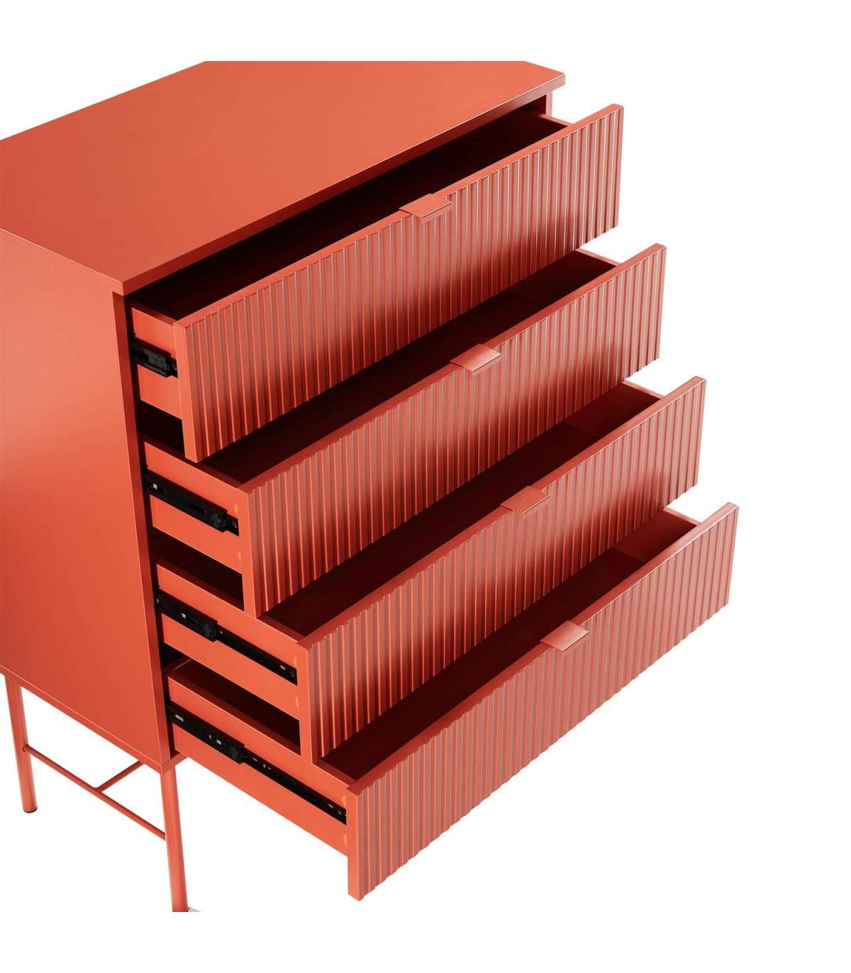 Kummut SEQUENCE 4-sahtliga 79x40xH100cm, sügispruun. Kummuti korpus on valmistatud MDF plaadist. Reljeefse pinnaga triibulised sahtlite esipaneelid annavad tootele omanäolise ja trendika välimuse. Sahtlid liiguvad metallsiinidel. Kummut on viimistletud vastupidava polüuretaanvärviga. Metallist alusraam ja jalad on viimistletud pulbervärviga.