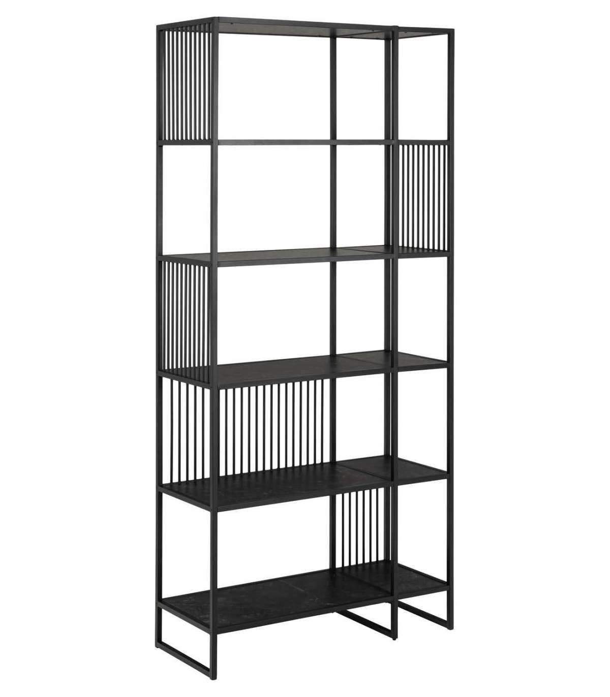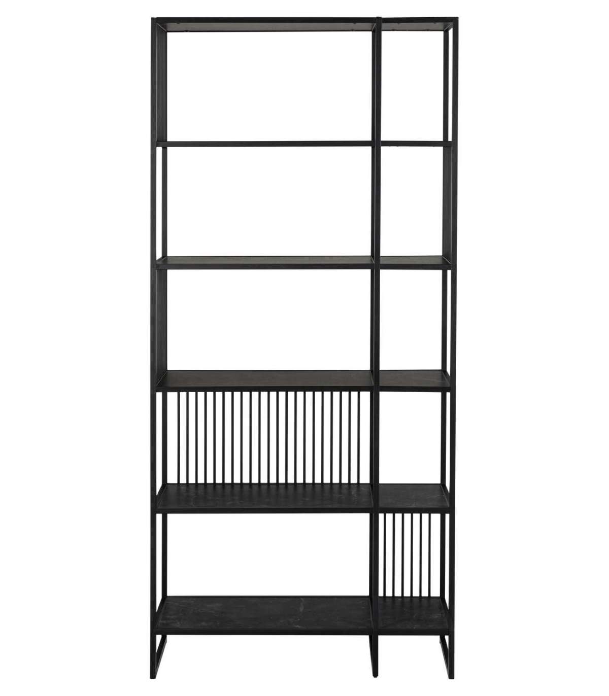 Riiul mõjub detailirohkuse tõttu visuaalselt põnevana. Musta terasraami ilmestavad vertikaalselt paigutatud traadid. Riiuliplaadid on musta marmori välimusega. Riiulitel saab eksponeerida väiksemaid dekoratiivobjekte ja sentimentaalselt olulisi esemeid. Materjal: MDF melamiin, pulbervärvitud teras. Toote mõõdud on 85x35xH185cm.