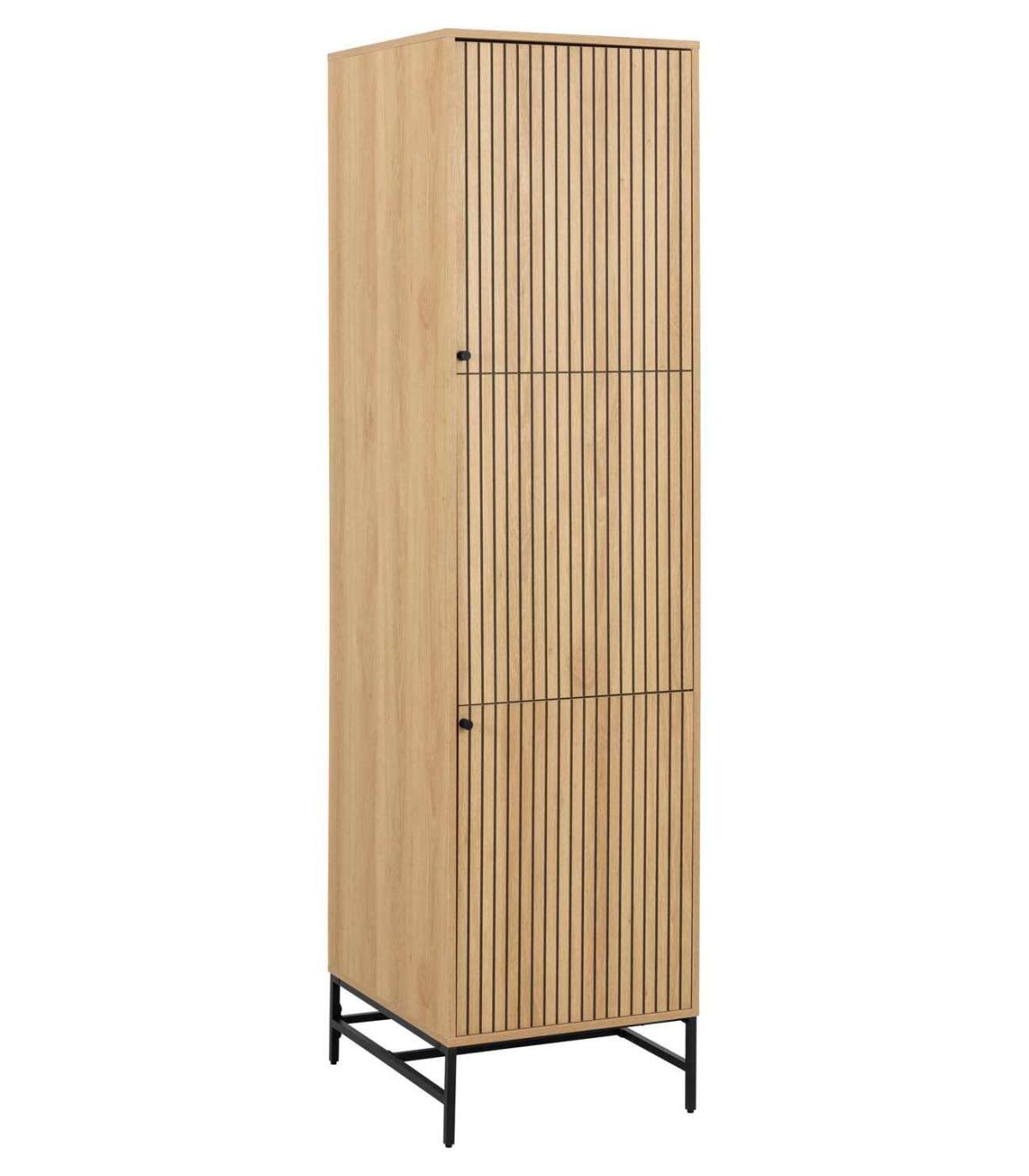 Kapp köidab tähelepanu tänu oma suurepärasele disainile. Kapis on piisavalt palju hoiuruumi. Kergesti hooldatav pind. Riidekapp on valmistatud tamme melamiinist. Alus on valmistatud mattmustast pulbervärvitud terasest. Mõõdud 51,1x60xH200cm.