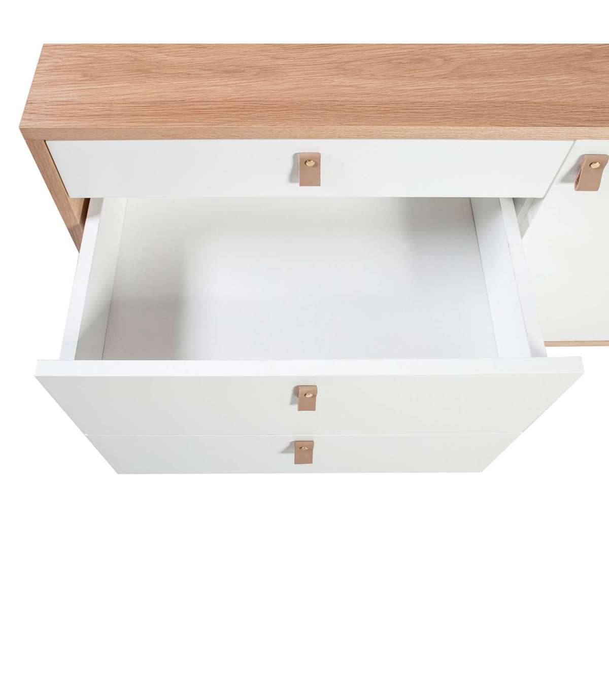 Комод HELENA WHITE дверь и 3-ящика 120x40xH75см, материал: МДФ, цвет: натуральный/белый. Материал: 18мм МДФ-пластины, покрытой шпоном дуба. Фасадные панели ящиков и дверь: МДФ, окрашенный в белый цвет. Ручки из кожзаменителя. Дубовые ножки.