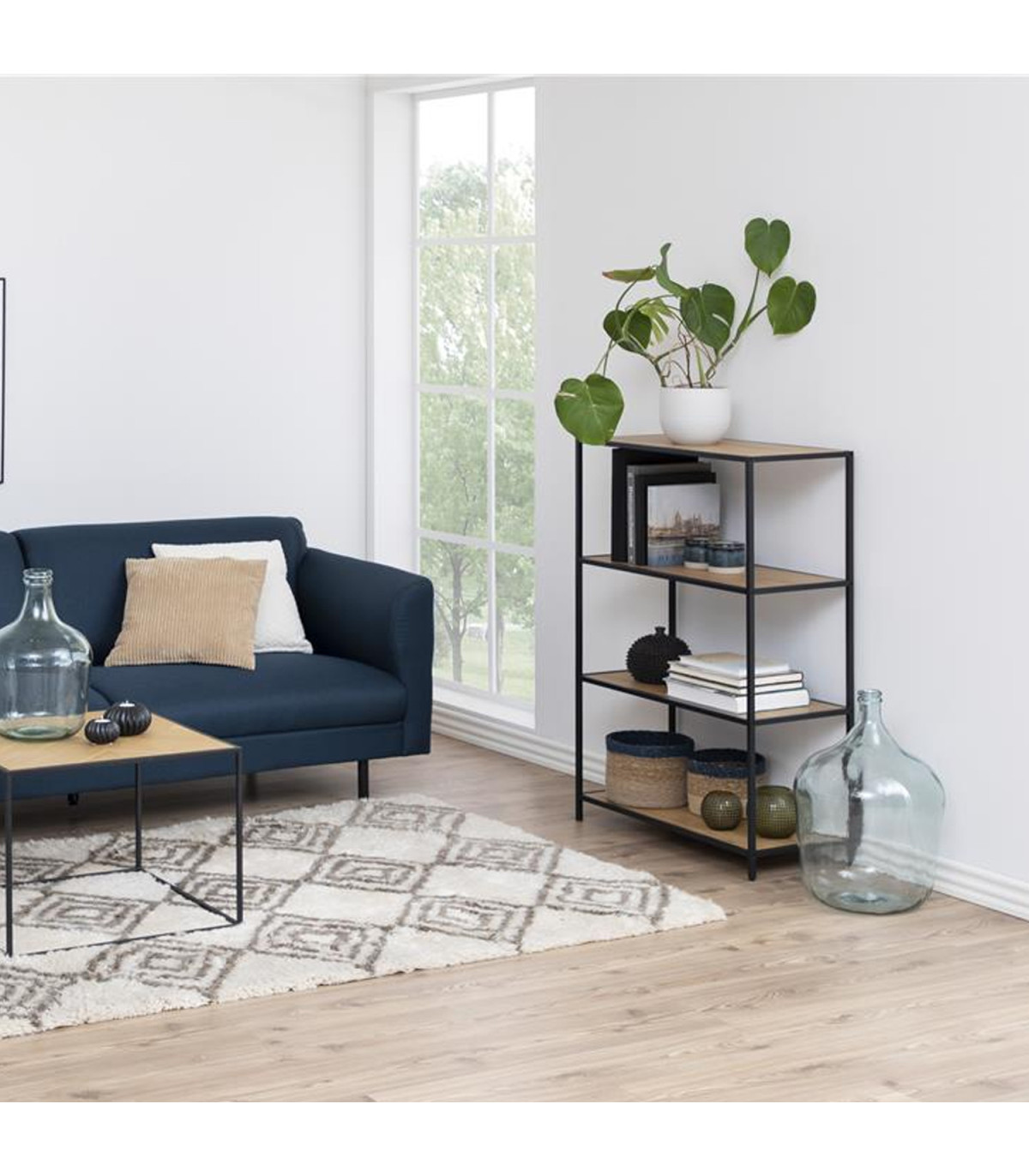 Полка SEAFORD 77x35xH114см, дуб. Со вкусом оформленную и практичную полку можно использовать в различных помещениях для удобного хранения. Полки изготовлены из ламинированного ДСП. Цвет - дикий дуб. Каркас выполнен из черного металла. Размеры изделия 77x35xH114см.