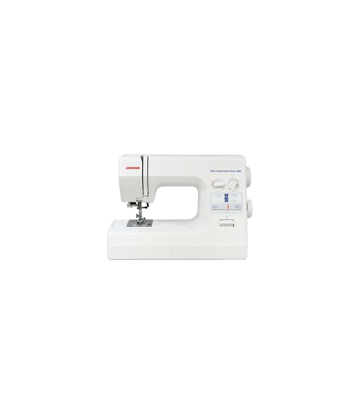 Швейная машина JANOME HD1800 Универсальная бытовая швейная машина с 18 швейными операциями. Предназначена для пошива толстых, прочных тканей (кожа, брезент, джинсовая ткань).