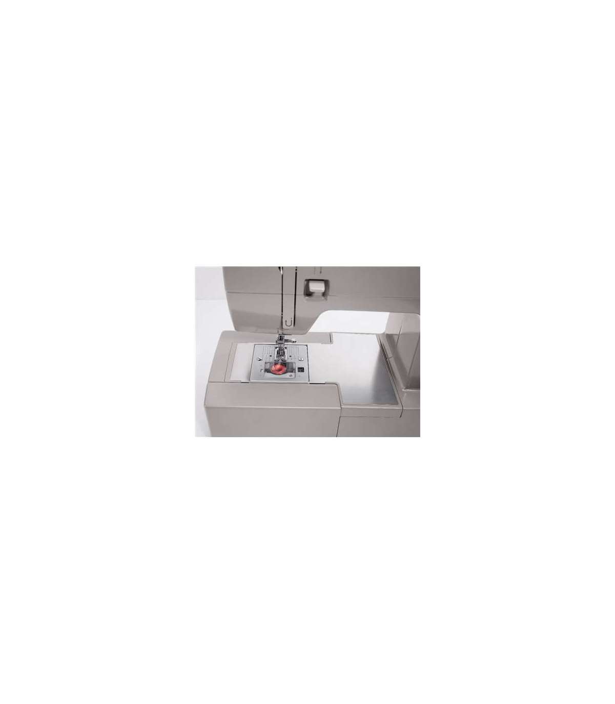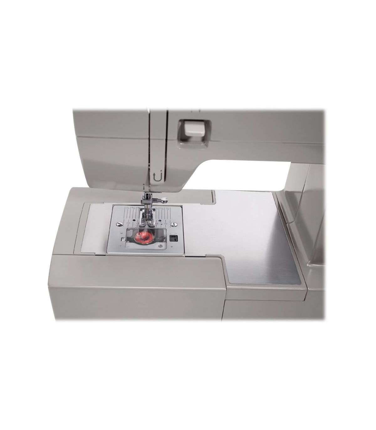 - Stainless Steel Bed Plate. Top Drop-in Bobbin. Snap-on Presser Feet. Extra-High Presser Foot Lifter.