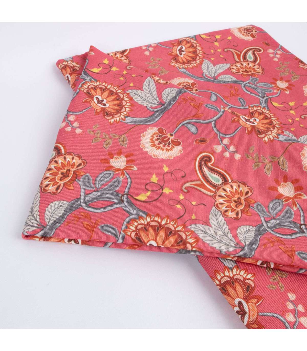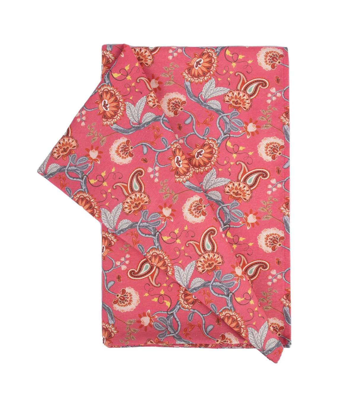 Laudlina LONETA 136x220cm, lilled roosal põhjal. Materjal: 50% polüester, 50% puuvill, kangas 357. HOOLDUS: võib pesta temperatuuril 30 kraadi pesumasinas.