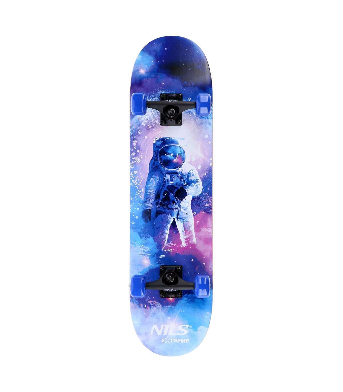 CR3108SA DREAMER Nils Extreme skateboard is designed for recreational skating on paved surfaces. Hard wheels help to gain high speed and provide good traction. ABEC-7 bearings guarantee fast and reliable ride. 9 ply laminated plywood used in this model, ensures high skateboard’s strength and unfailing performance.Specification:Dimensions: 78×20 cmDeck:9 ply laminated plywoodprofiled on both sidesvery durablepolishedBearings: ABEC-7Truck: strengthened, aluminum truck and baseplateRubbers: hardness – 98AWheels: PU BLUE 54×36 mmGrip tape: black, anti slipWeight: 2,17 kgMaximum user weight: 100kgRemarks:Not for commercial use24 months warrantyImporter: Abisal Ltd. | Poland | 41-807 Zabrze | Pyskowicka Street 17 | e-mail: abisal@abisal.plAbisal Ltd.. declares that the products sold by the company are safe and meet the requirements contained in the Act on General Product Safety of December 12, 2003. (Journal of Laws of December 31, 2003)