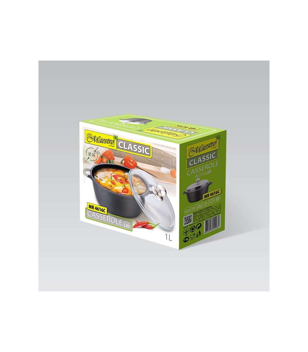 Maestro MR-4616C Pot with lid 16 cm 1 l Black