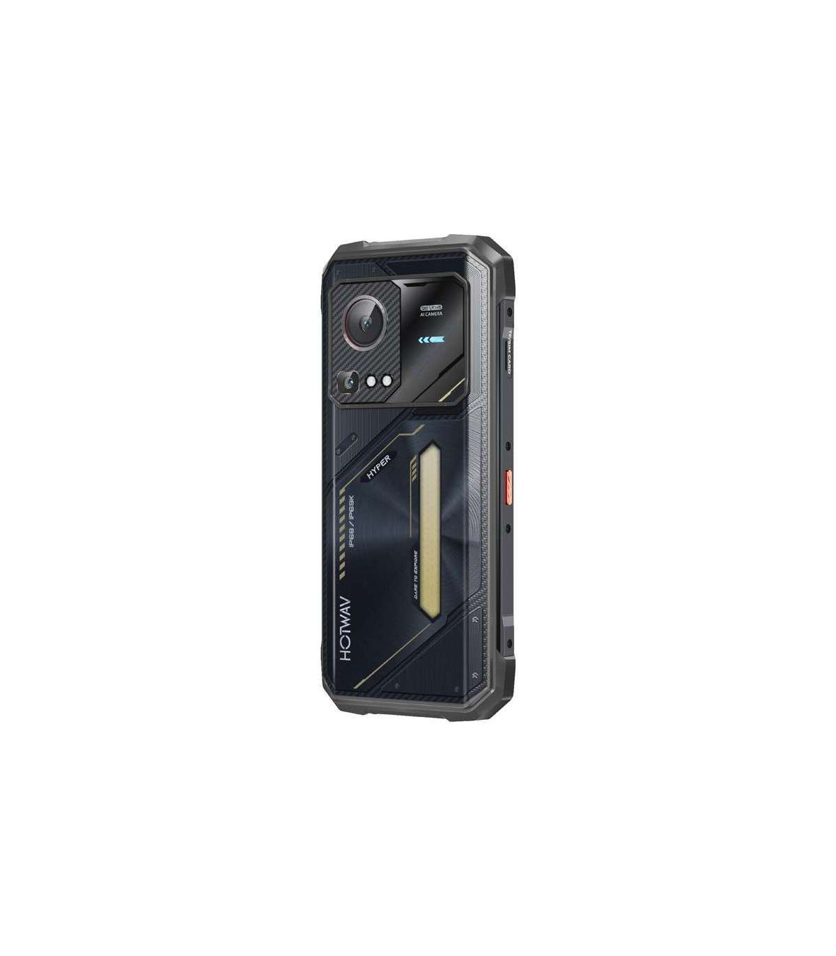 The Hyper 7S's appearance pays homage to modern robotics – the distinctive high-gloss rear panel, created using an advanced electroplating process, gives it a unique, mech-inspired character. Aggressive, geometric lines and metallic accents create a cohesive whole with the device's "robotic armor." Its durability is confirmed by details such as a screw-mounted aluminum frame, shock-absorbing rubber corners, and a sealed charging port cover. A practical addition is the integrated lanyard hook, which makes it easy to carry the phone safely in difficult terrain.