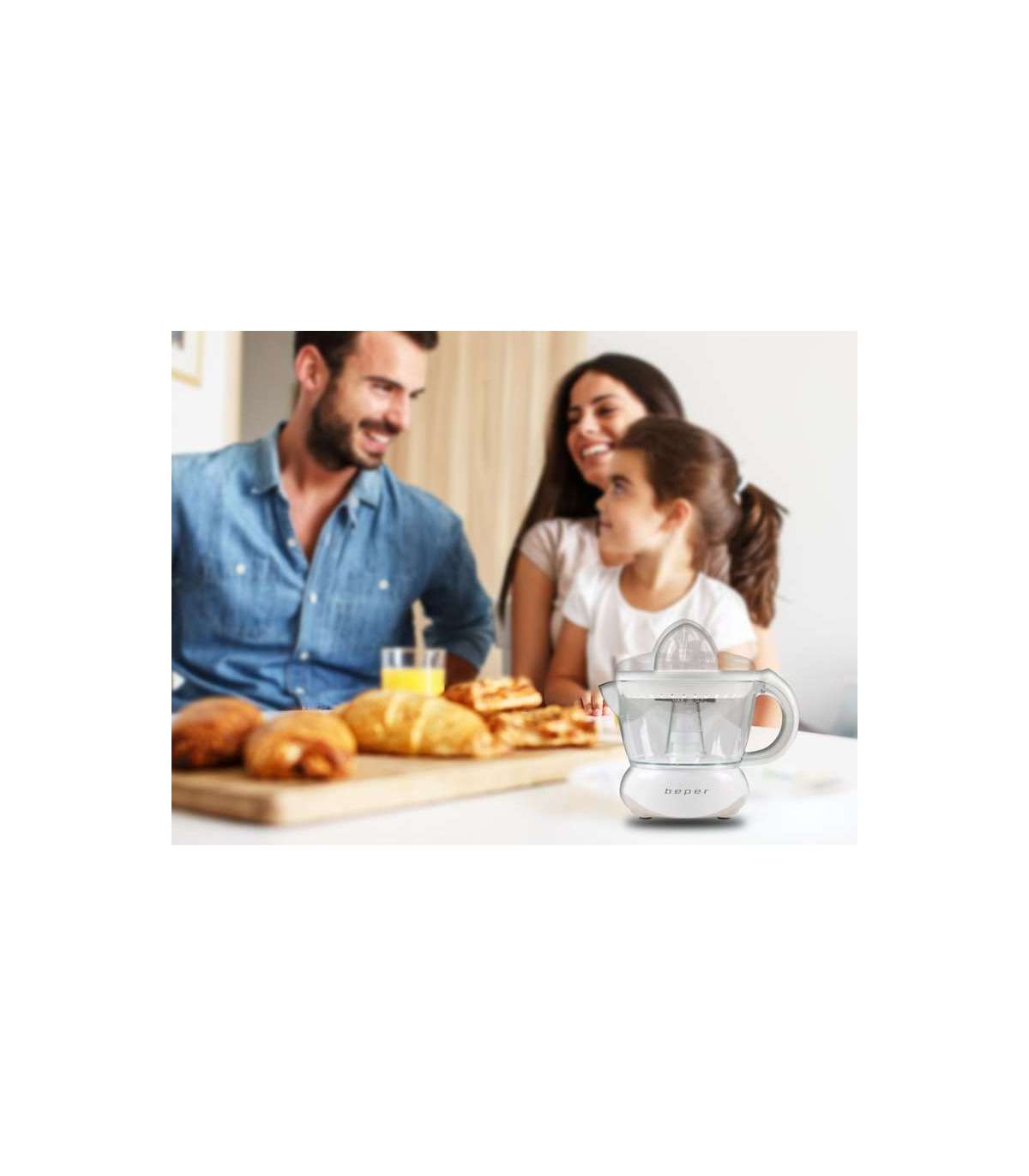 Kompaktne ABS korpusega elektriline mahlapress, mis sobib tänu kahele erinevale koonusele väikeste ja suurte tsitrusviljade jaoks. Topelt pöörlemissuund optimaalseks pigistamiseks. Sisaldab filtreerimisresti ja gradueeritud mahutit. Stabiilsuse tagamiseks libisemiskindlate jalgadega. Lihtne lahti võtta ja puhastada. Kaasas hügieeniline plastikkate.
