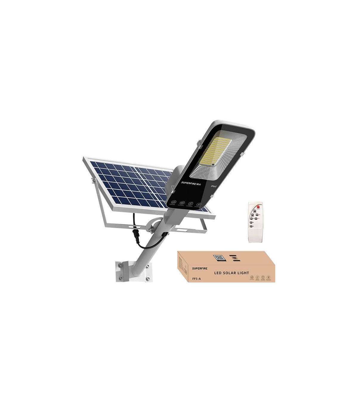 Draw energy from the sun's rays! The Superfire lamp is a combination of energy efficient and safe lighting that integrates smart control technologies. FF5-A will work well as street, industrial or commercial lighting. The use of damage-resistant materials and advanced PWM power technology ensures high efficiency in low temperature environments. You can control the lamp with the remote control (included).