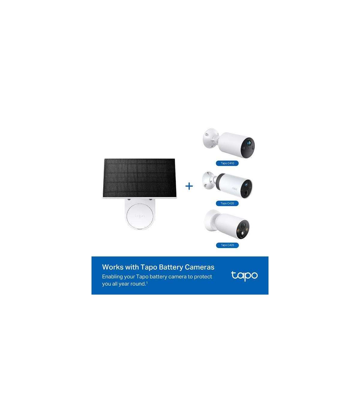 Works with Tapo Battery Cameras: Compatible with all Tapo Battery Cameras1, enabling your Tapo battery camera to protect you all year round.