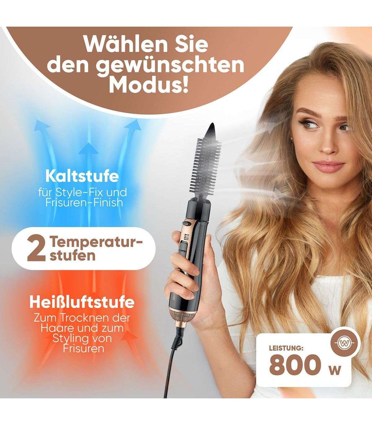 – 1 round brush (Ø approx. 25 mm) – for extra volume and bounce in the hair